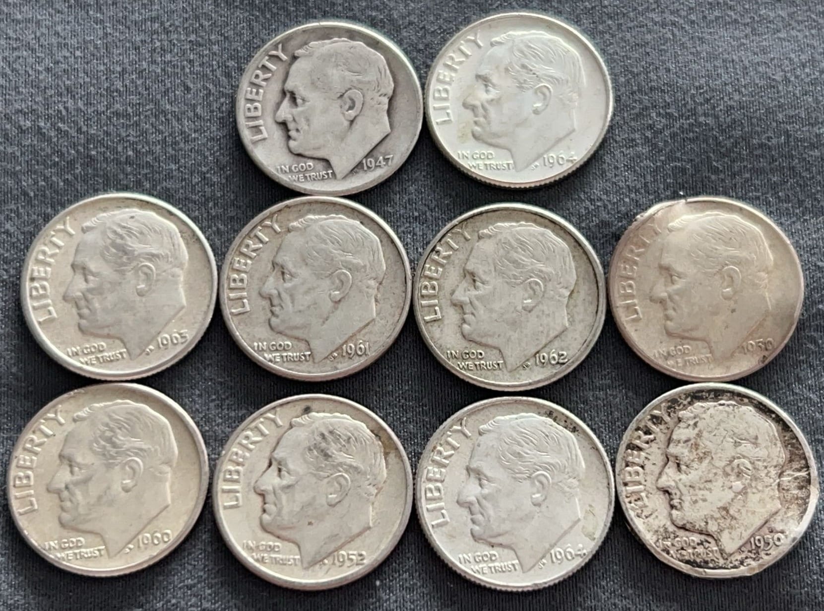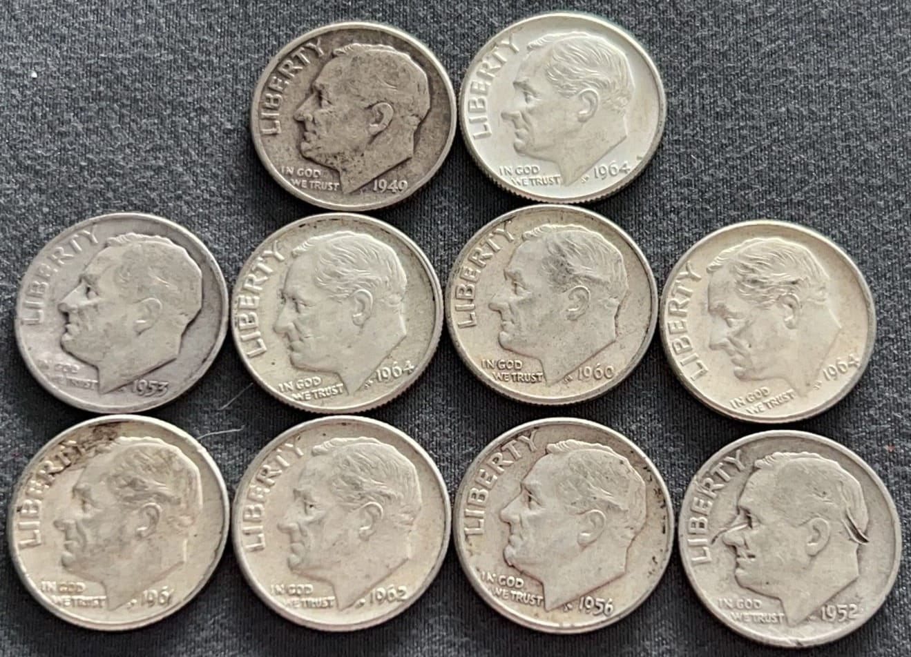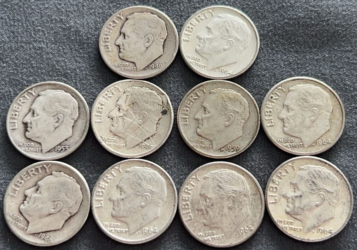 3552 10 Roosevelt Dimes 1946-1964
