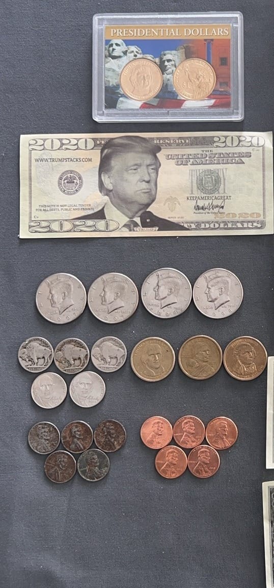 4400 Coins & Currency: 5- Buffalo Nickels 1920-1936, 6- $1 Coins 2000-2010, 5- 1943 Steel Wheat Pennie’s, 11- Lincoln Pennies 1988-2017, 2017 $1 Bill, 6- $2 Bills 1976-2017