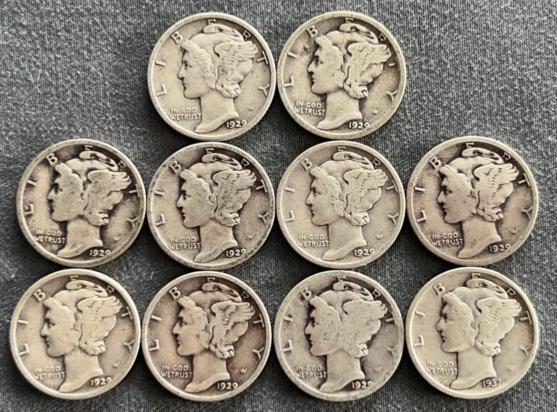 3542 10 Mercury Dimes 1927-1945