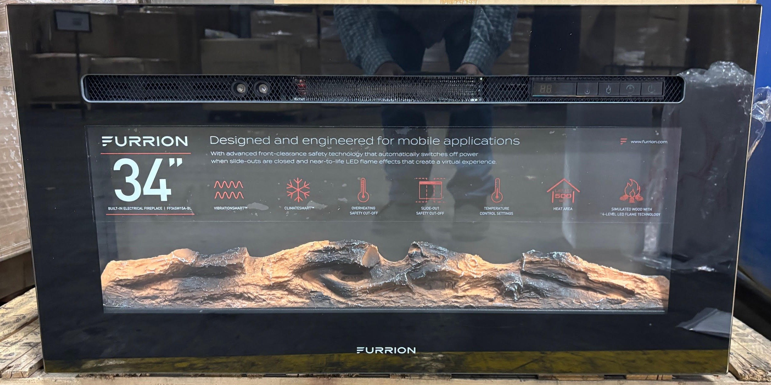519 Furrion Electric Fireplace, Modern Wood Flame LED Technology, Adjustable Temperature Settings , Timer, Remote Control - 34"