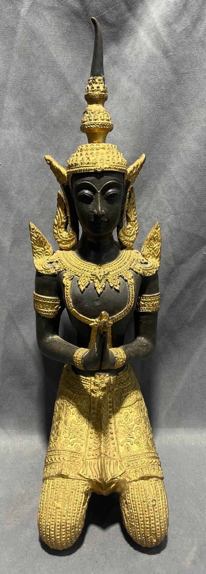 2041 Gilt Bronze Thai Kneeling Sculpture with Ornate Detailing, 16?