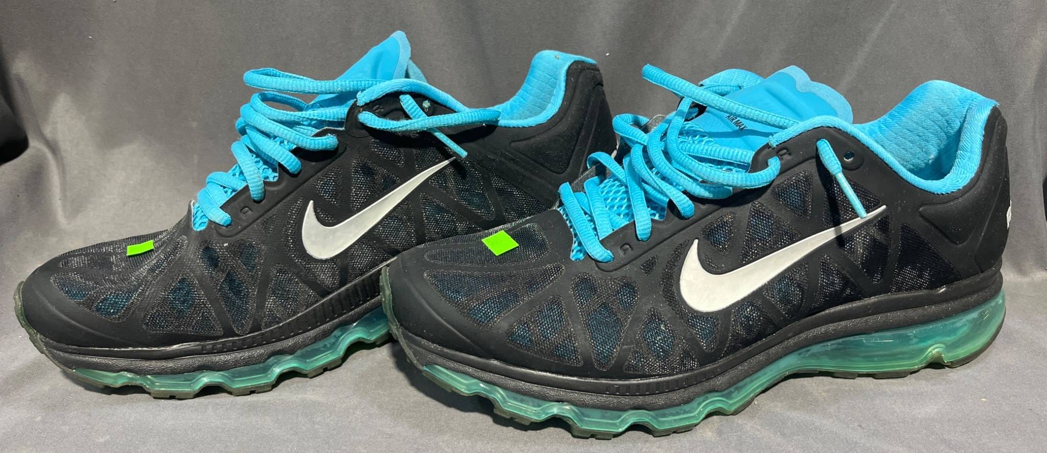 2046 Nike Air Max+ 2011 Black and Teal Running Shoes, Size 11 US