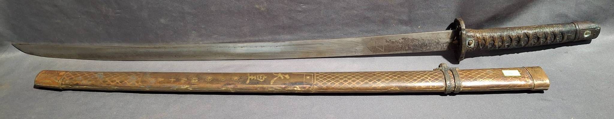 2078 Japanese Sword with Scabbard and Inscribed Blade – 25? Blade Lgth.