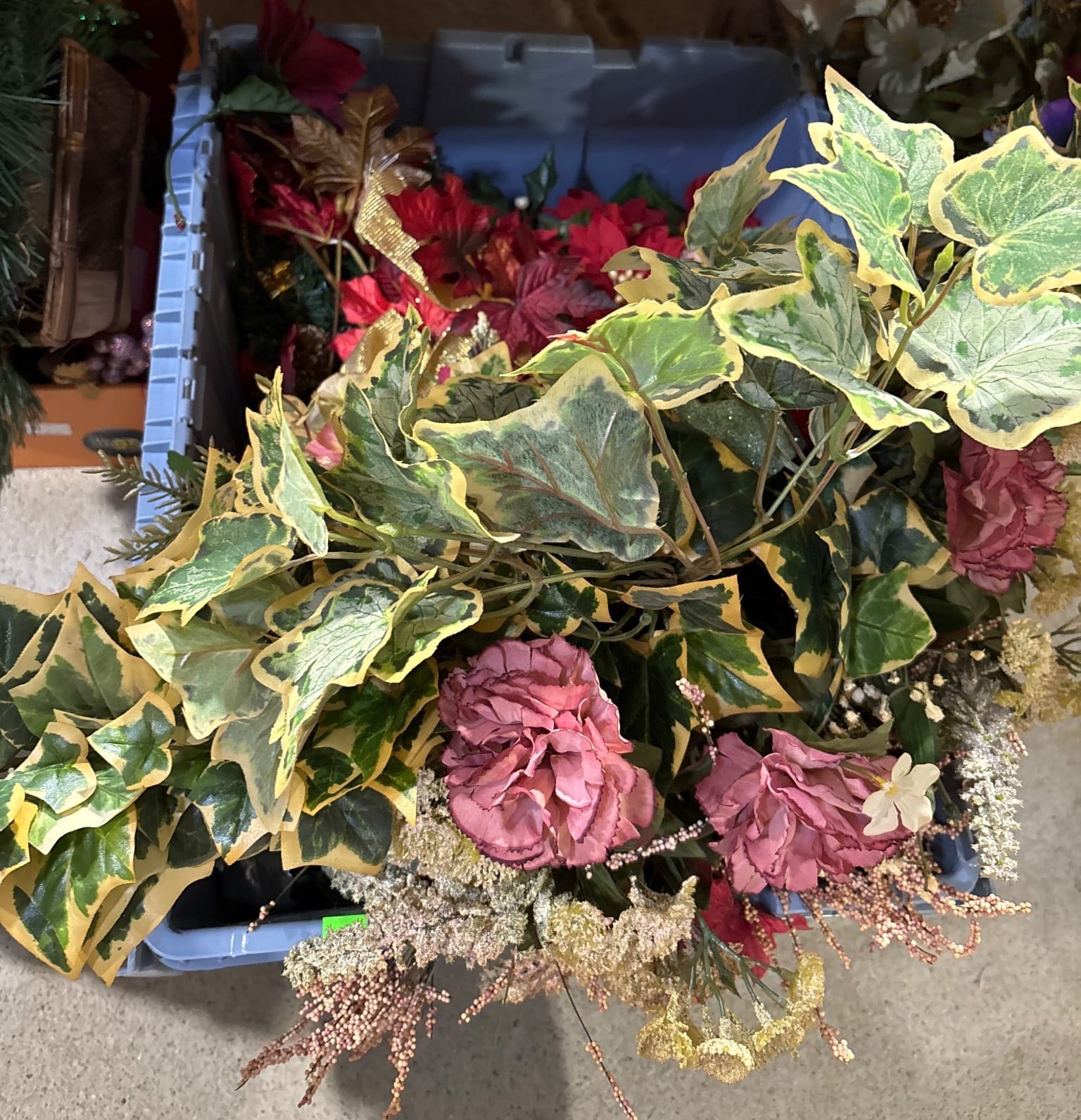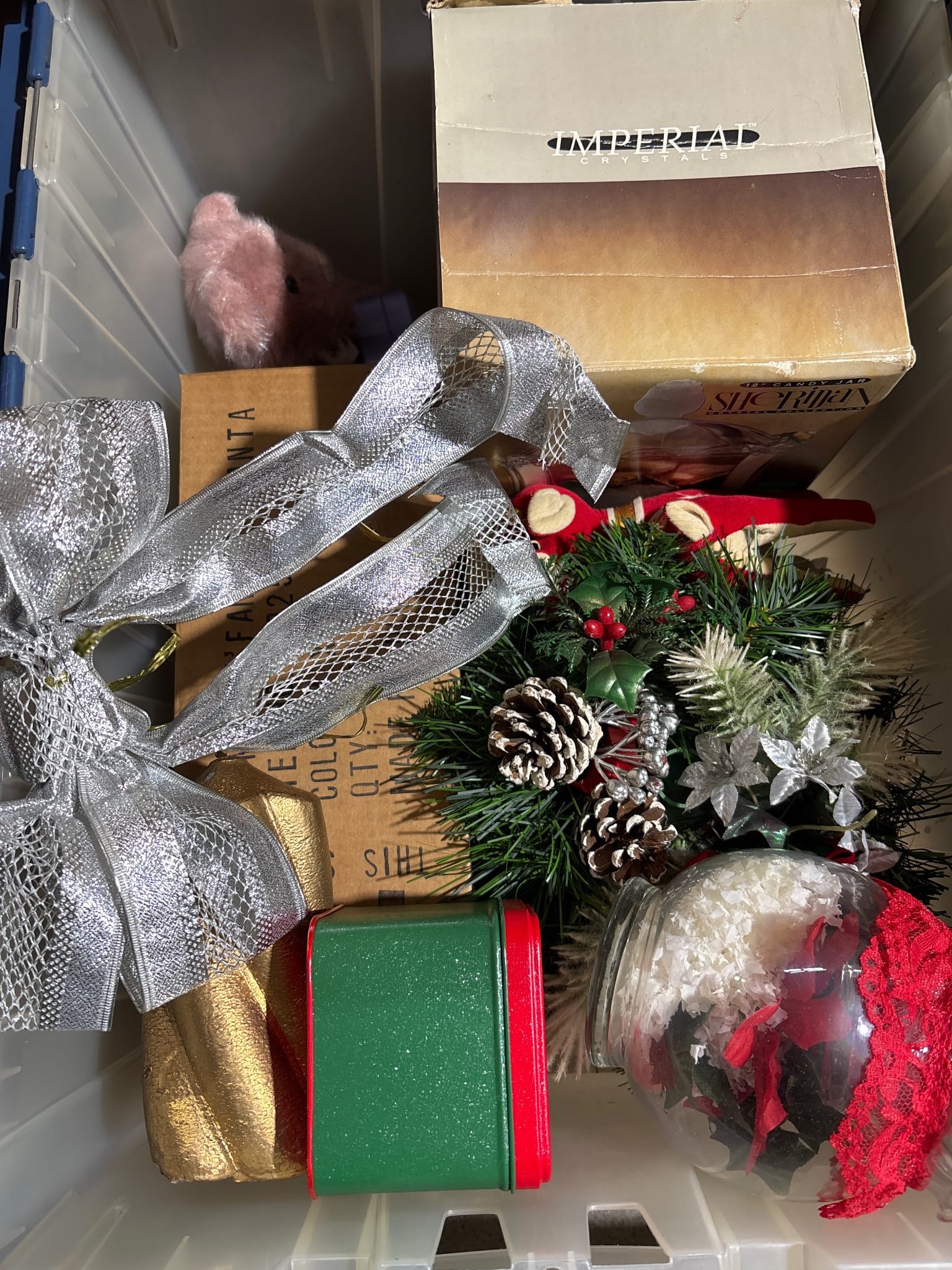 9060 Vintage Christmas Bubble Lights, Holiday Decorations and Telephones in Plastic Storage Containers 22 x 17 x 22 - 19 x 14 x 19
