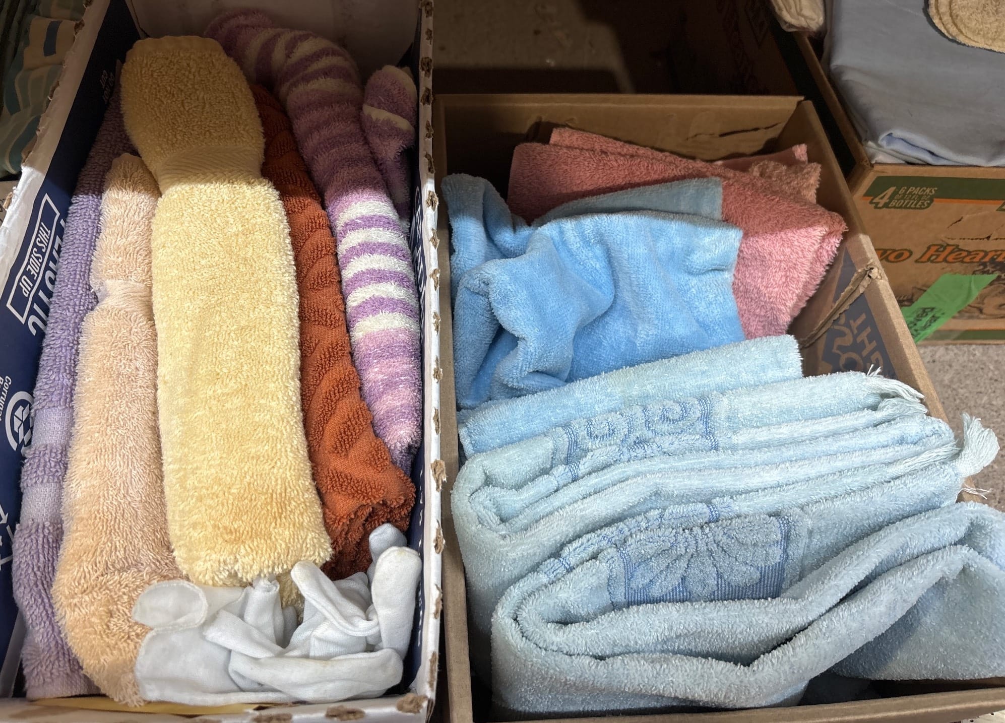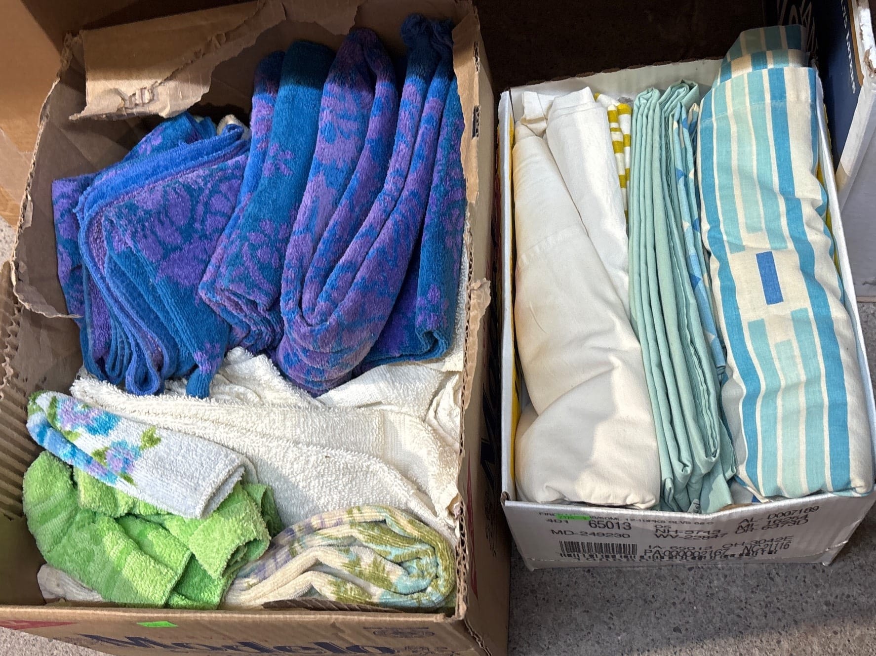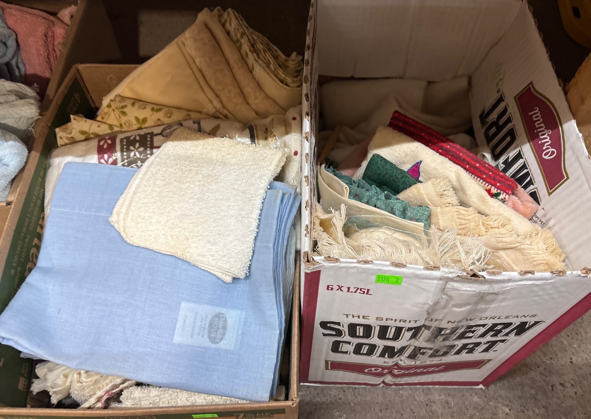 9084 Household Items in 2 Plastic Storage Bins Inc. transfer Pump, Towel and Styrofoam Cups, bins 25”x16”x15”
