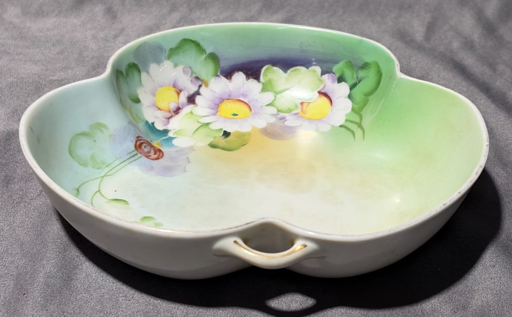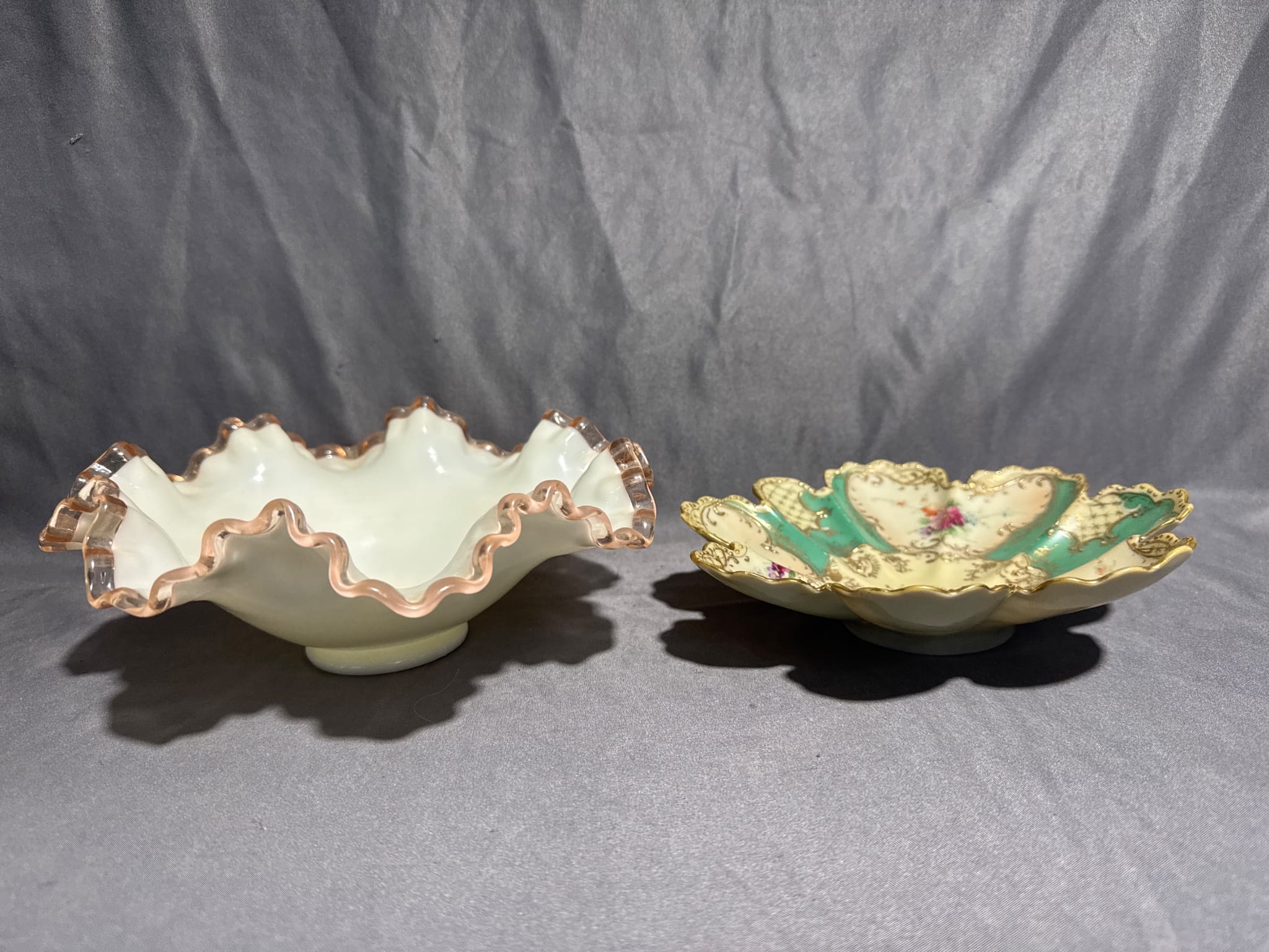 2063 Porcelain Deep Bowl & Hand-Painted Footed Vase, RS Germany Green Star