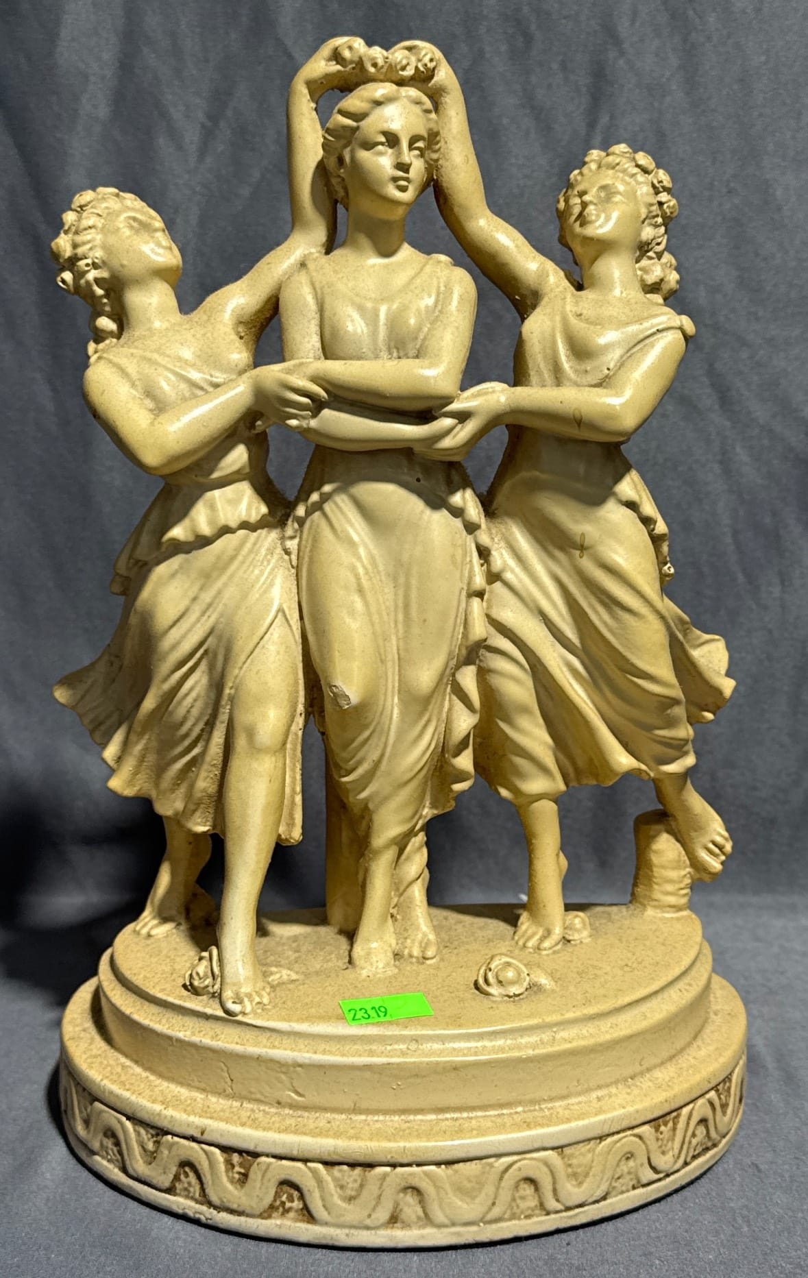 2040 Kneeling Woman Green-Painted Sculpted Female Figure, 17 1/2?