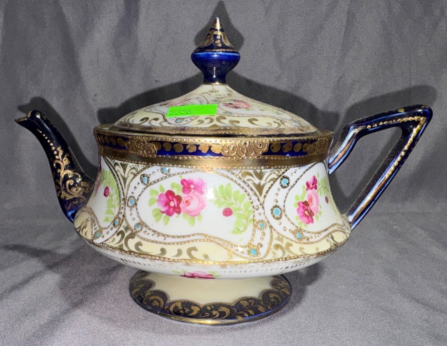2062 Hand-Painted Japan Porcelain Sugar Bowl and Creamer with Floral and Gilded Design, 4-6?