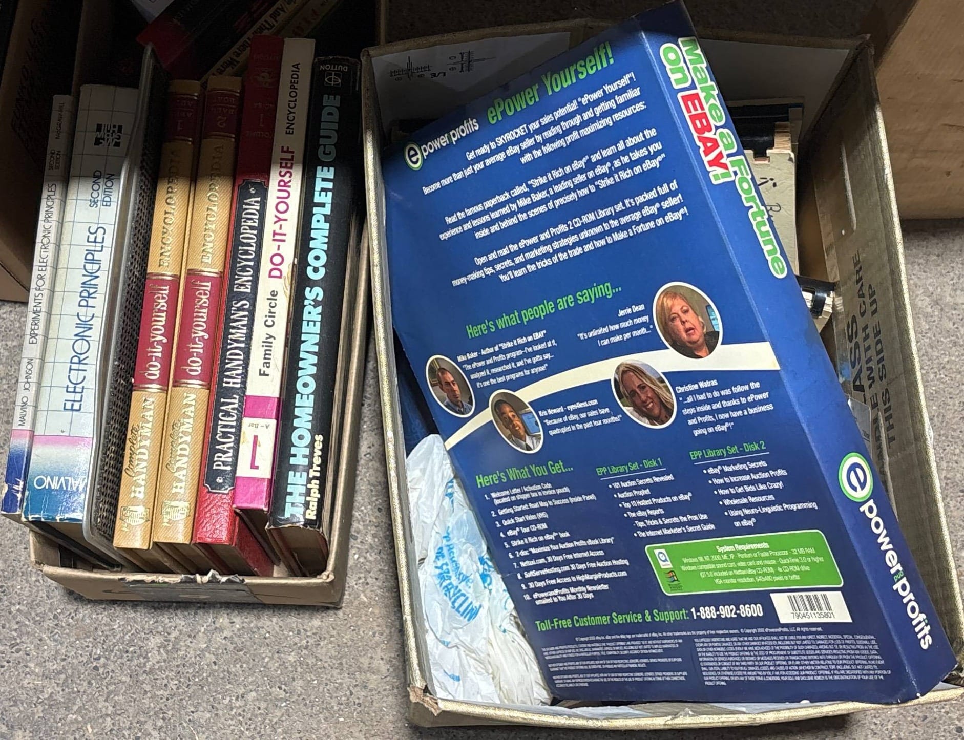9047 2 Totes Containing Plumbing Supplies and Postage Stamp Albums