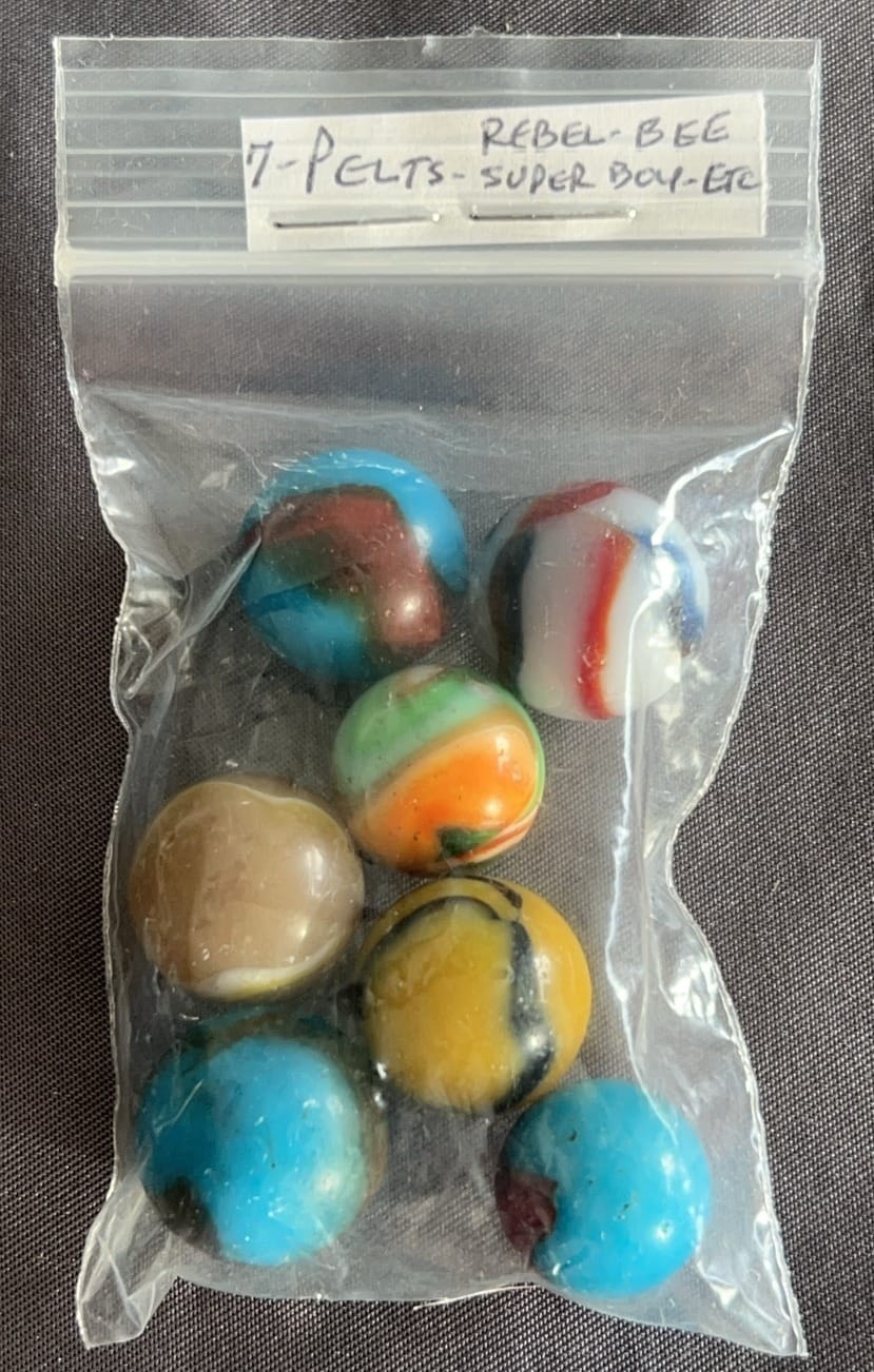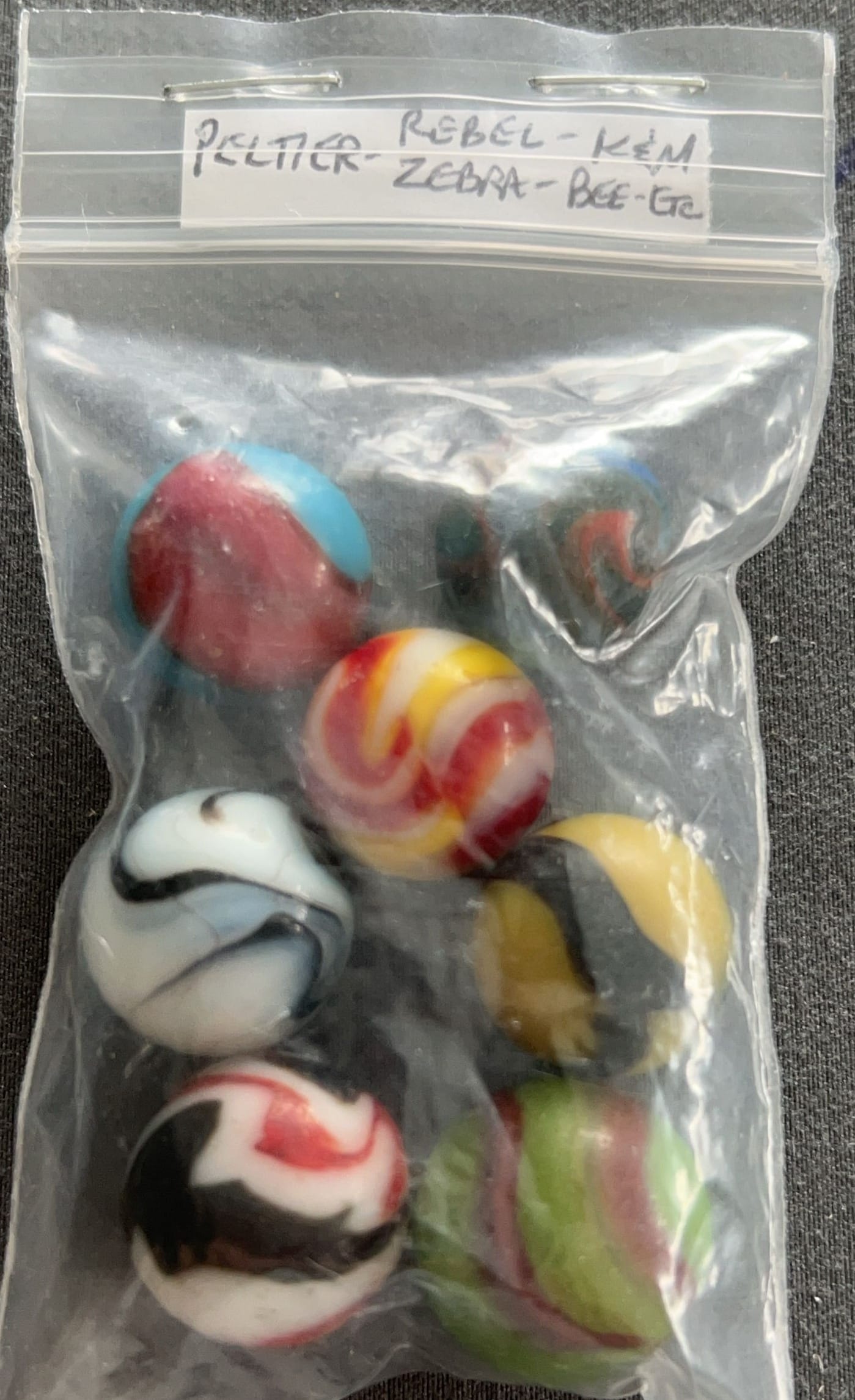 5255 2 Peltier Marbles “yelp Bee” & “Zebra”