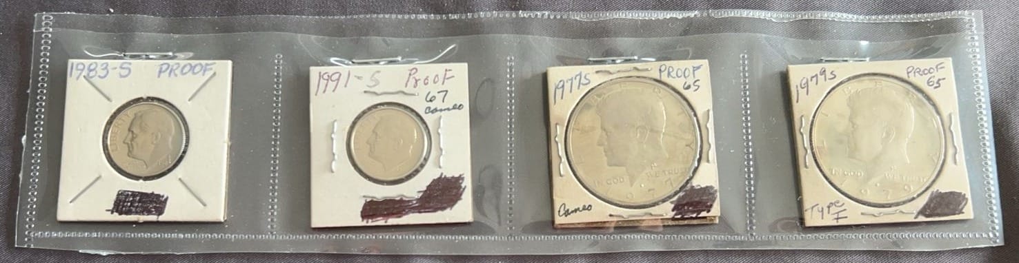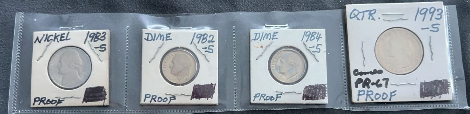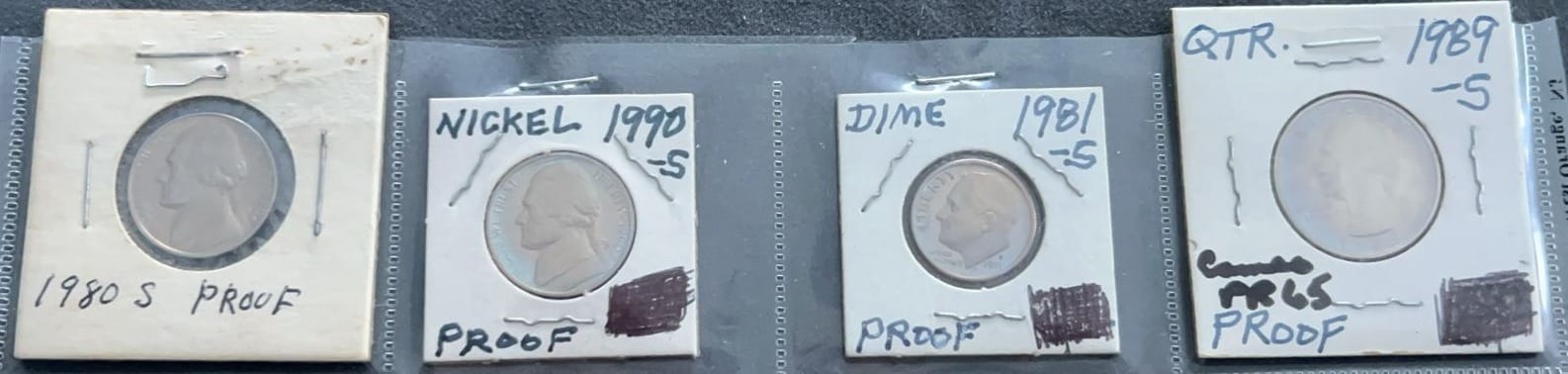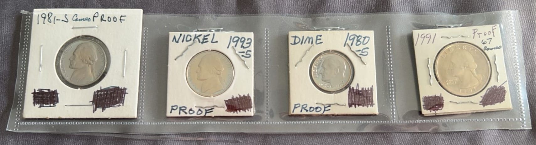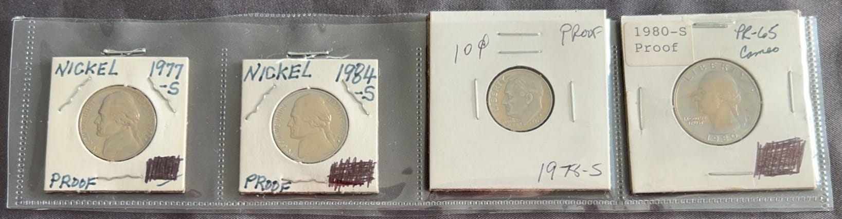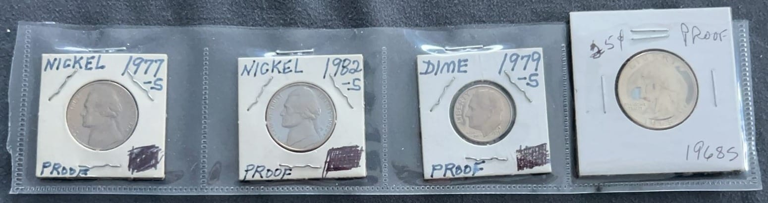 5214 4 Proof Coins Inc. 1977-S Jefferson Nickel, 1984-S Jefferson Nickel, 1978-S Roosevelt Dime, 1989-S Washington Quarter