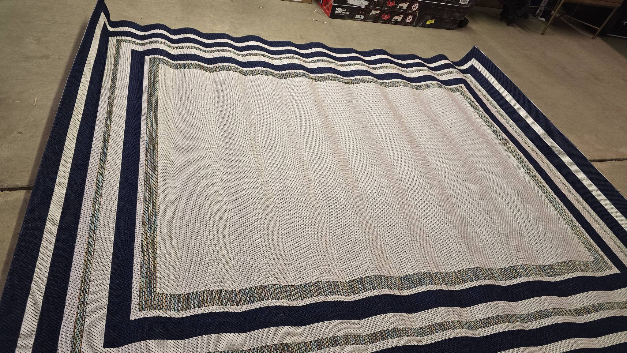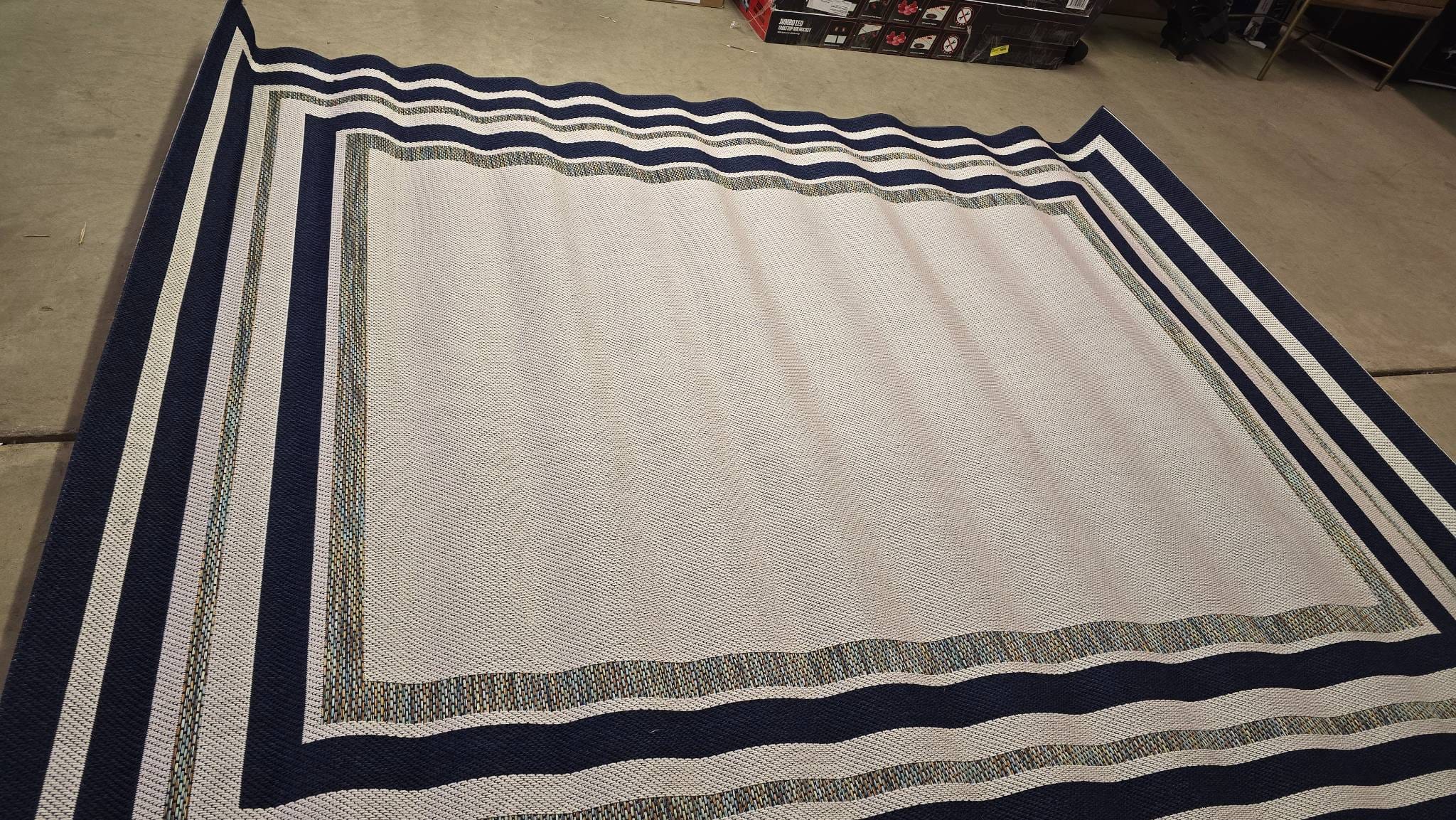 8032 Member’s Mark Everwash Washable Area Rug, teal geo – measuring: 6’6?x 9’6?