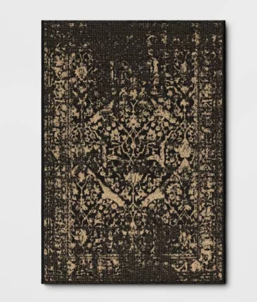 87 Threshold Distressed Black Outdoor Area Rug, 5? x 6?
