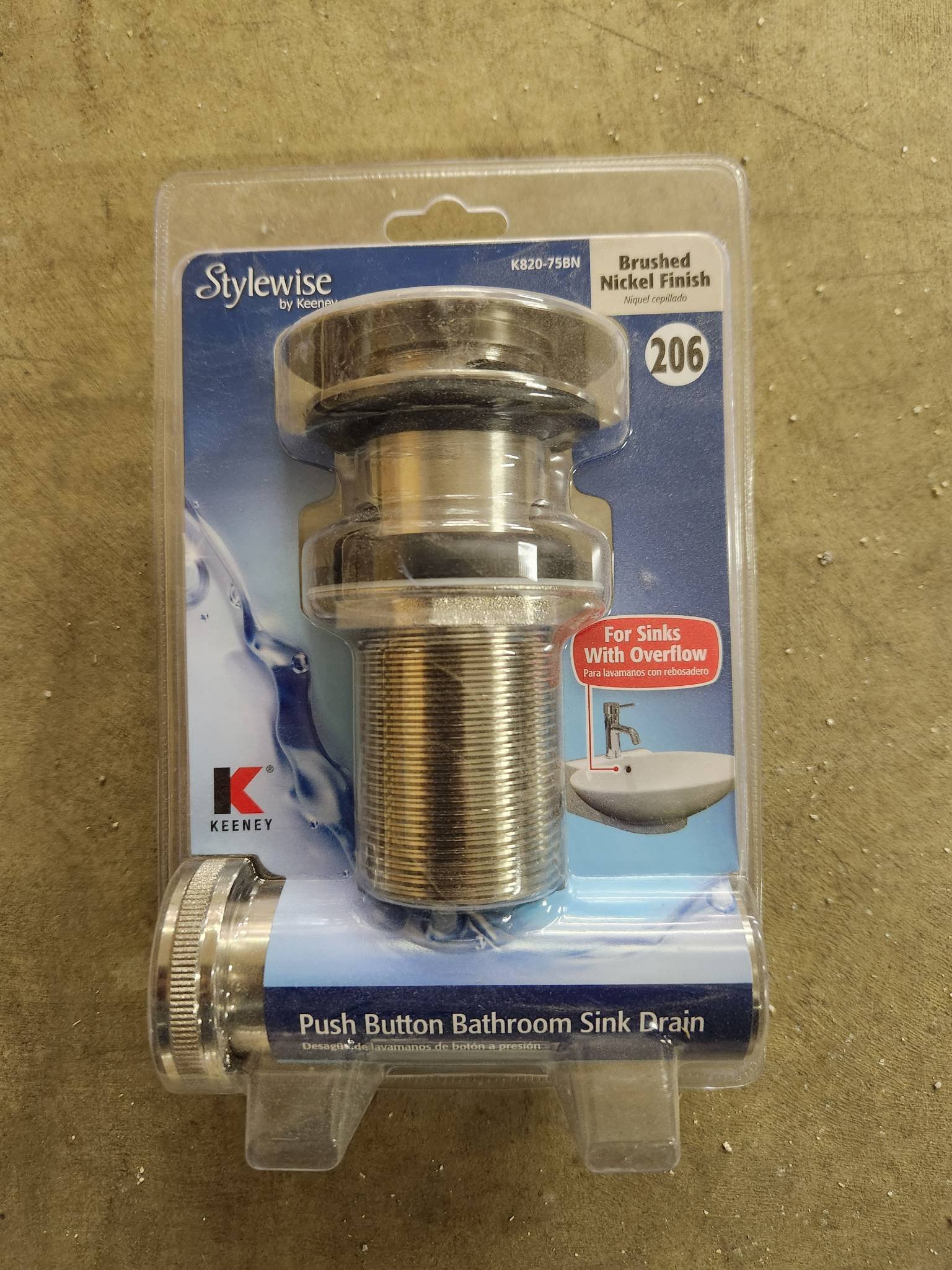 19 Stylewise by Keeney Push Button Bathroom Sink Drain, Brushed Nickel Finish