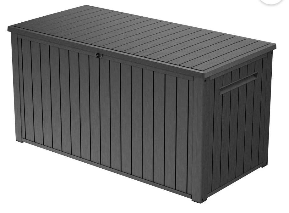 7719 Black Plastic Storage Bin with Reinforced Sides. 27 gallon a. No lid