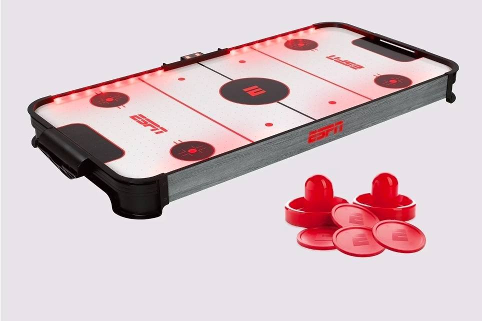 8005 ESPN Plastic Tabletop Air Hockey Table – MISSING POWER CORD, MALLET, AND PUCK