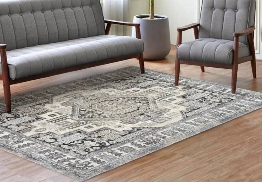 7721 Patterned Area Rug with Geometric and Floral Accents. 10’ x 7’