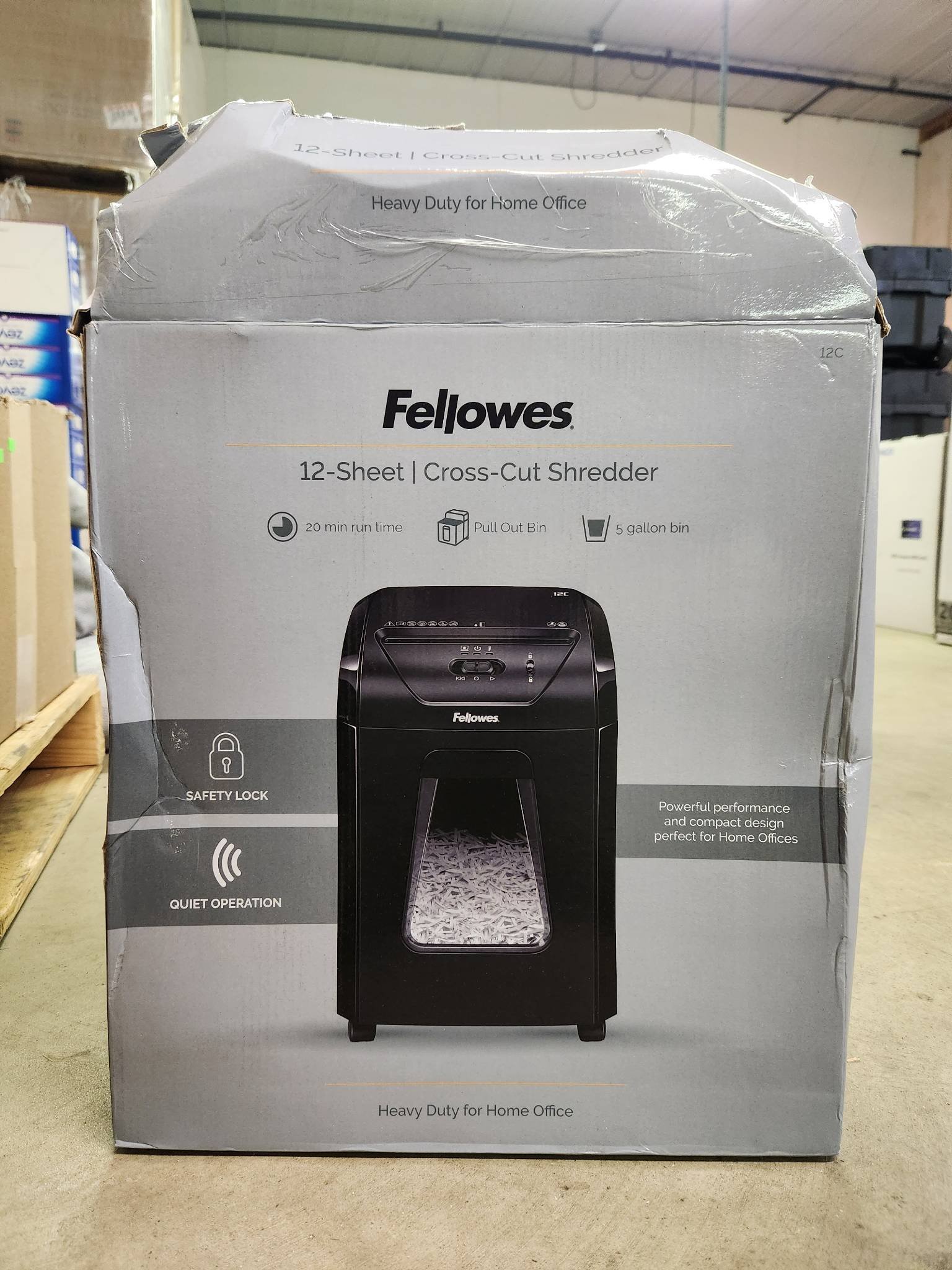 69 Fellowes Powershred 12 Sheet Cross-Cut Paper Home Office Paper Shredder, 19.50? H x 9.69? W x 13.44? D