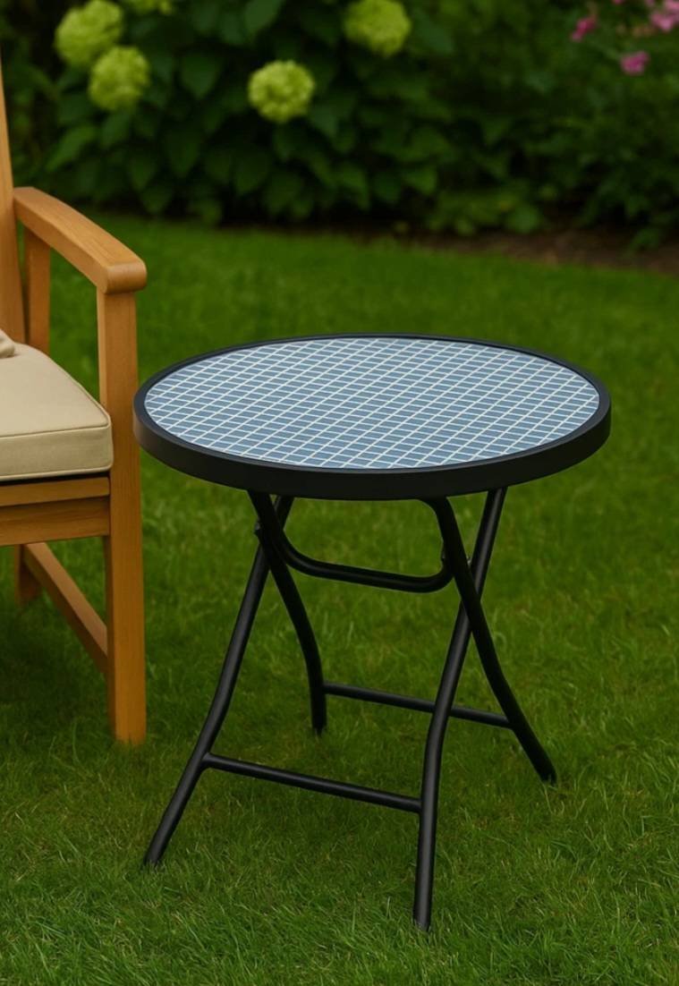 93 Home Essentials Glass Top Folding Patio Table 18? H x 18? D