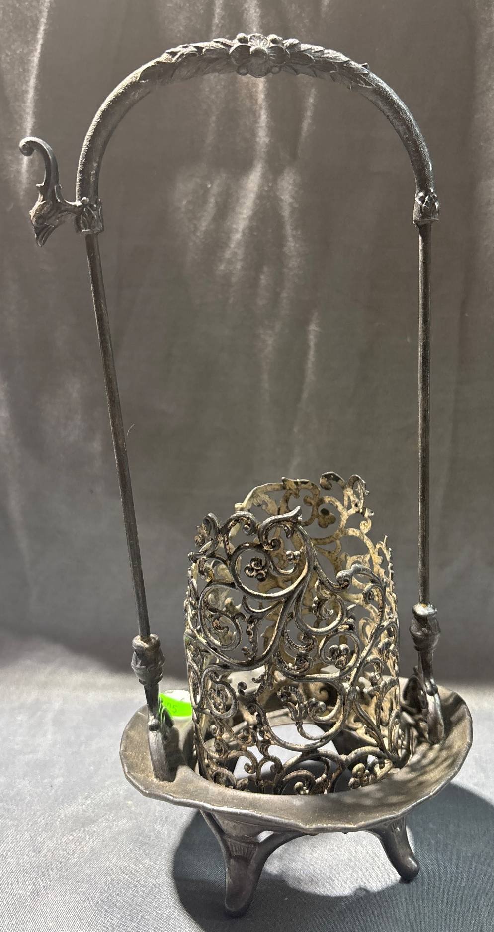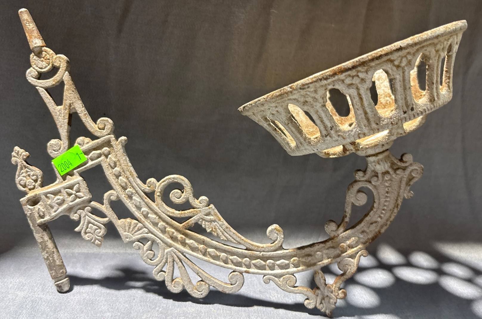 2004 Cast Iron Oil Lamp Wall Sconce with Ornamental Design 13”