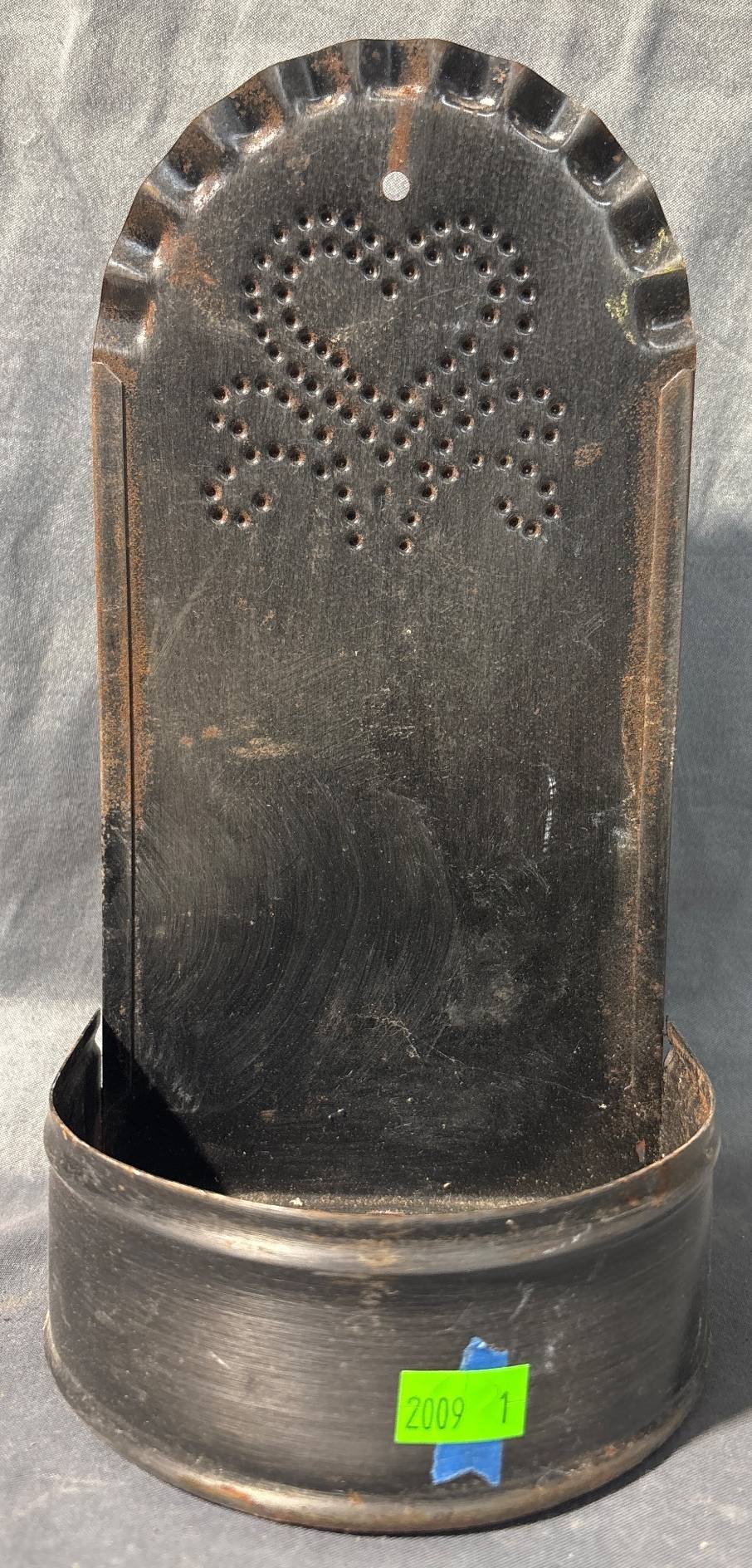 2009 Punched Tin Wall-Mounted Candleholder with Heart Design 10”
