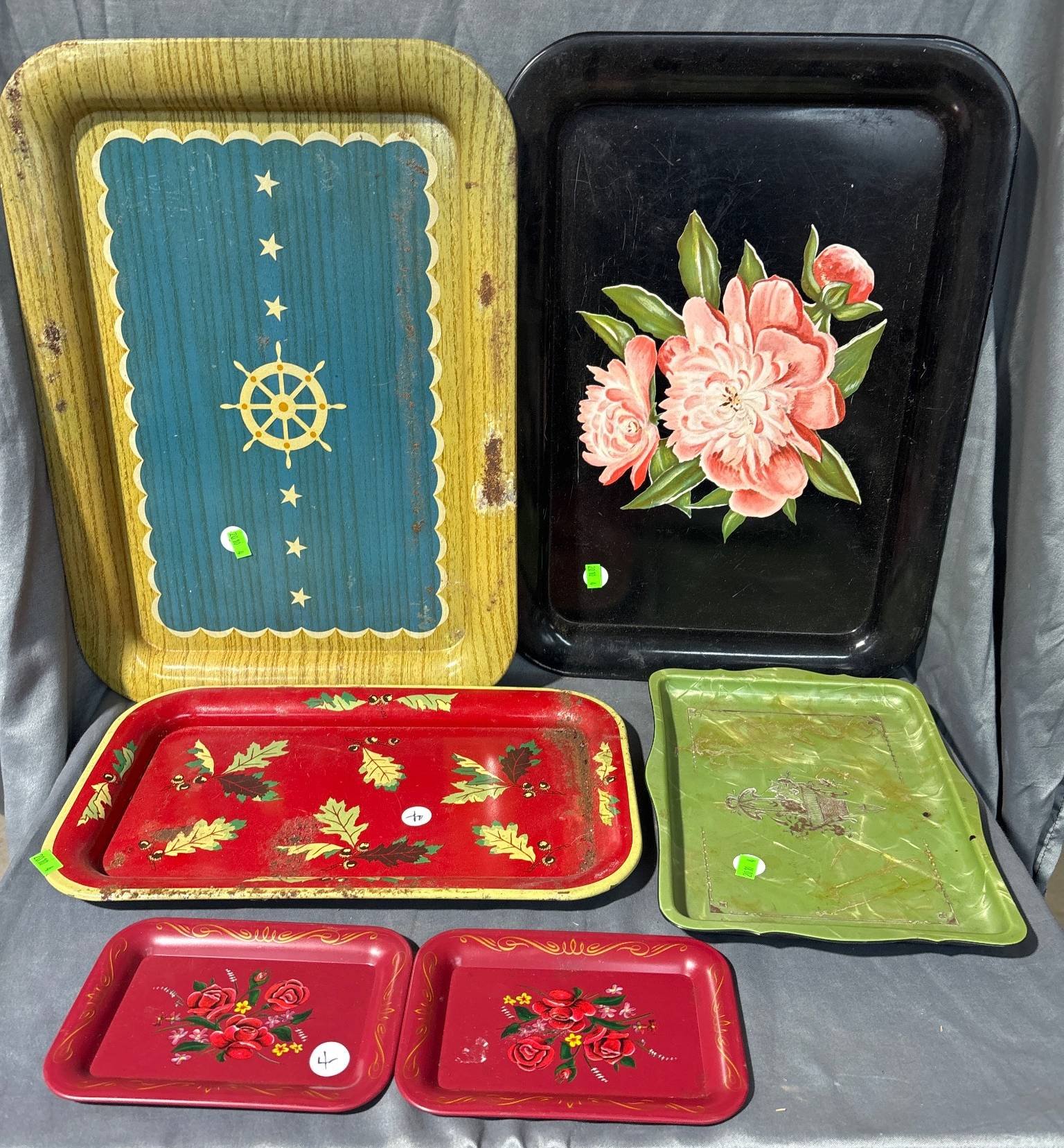 2010 6 Metal Serving Trays with Painted and Plain Designs 7”x5”-13”x18”