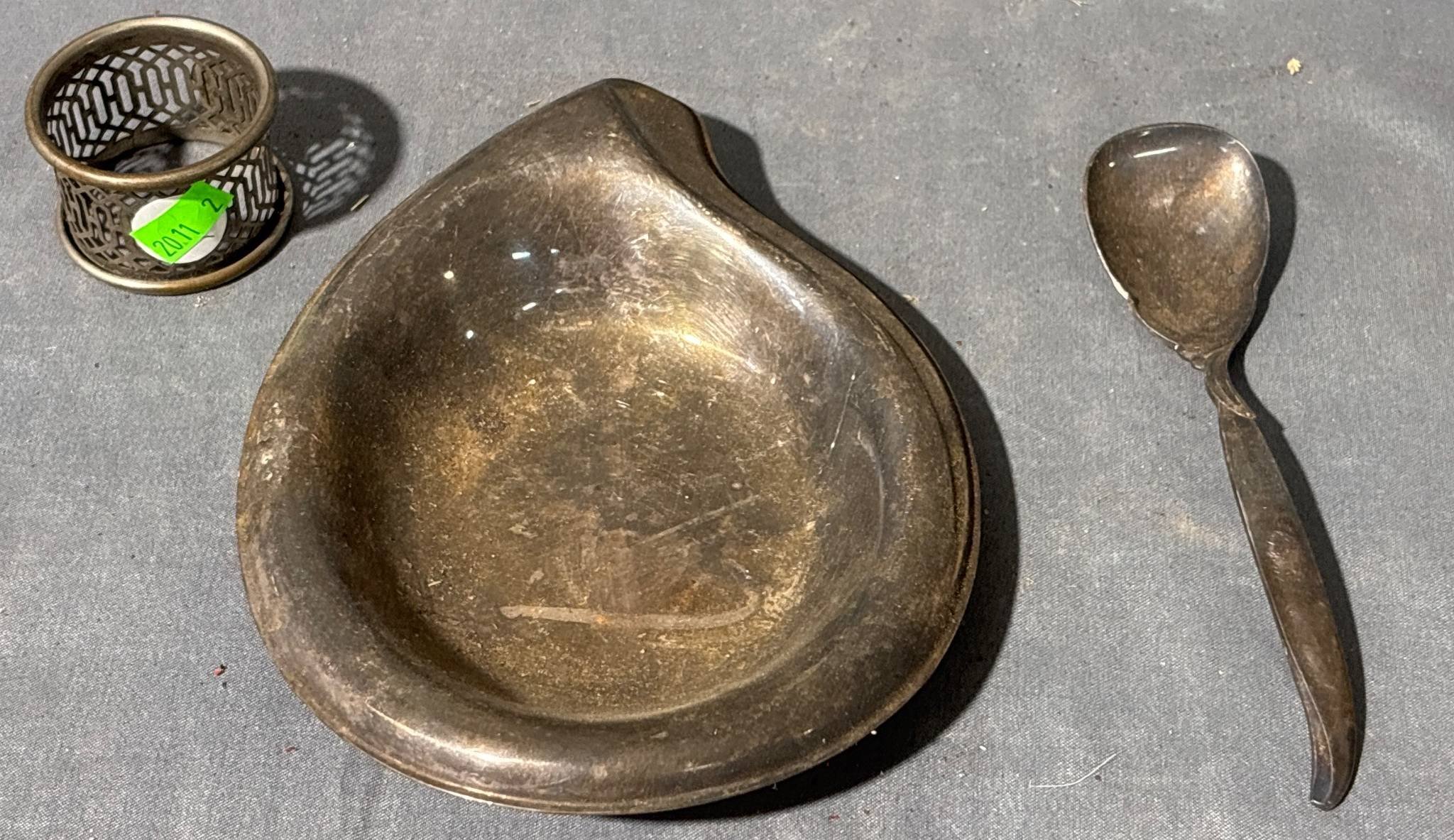 2011 1847 Rogers Bros Silver Plated Spoon, Dish, and Napkin Ring, Flair Pattern 7”x6”,6”,2”x1.5”