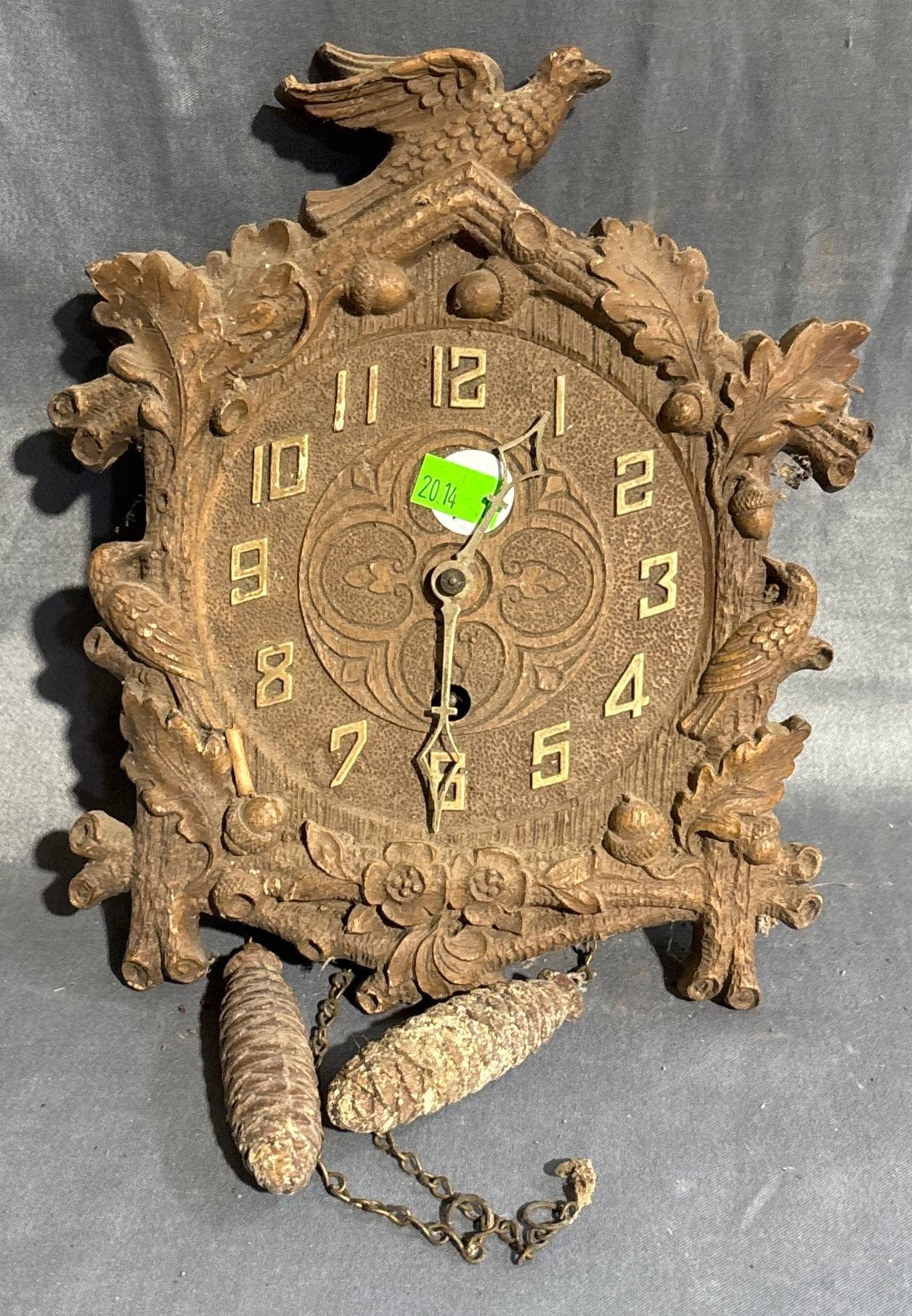 2014 Carved Clock With Bird and Foliage Motif 7”x4”x9”, Untested