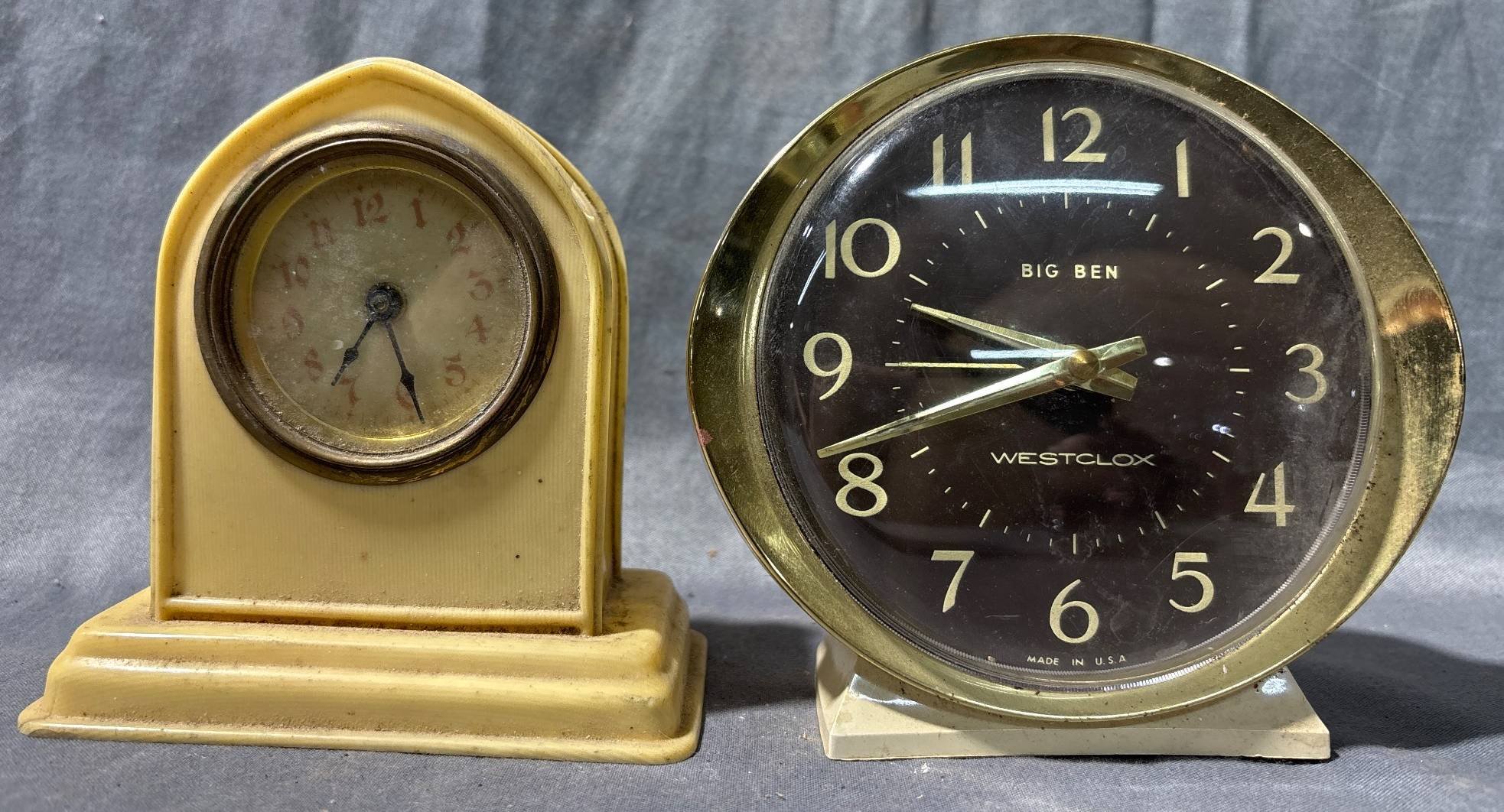 2022 2 Clocks Inc. Westclox Big Ben Alarm Clock and Cream-Colored Mantel Clock 4”,4.5”