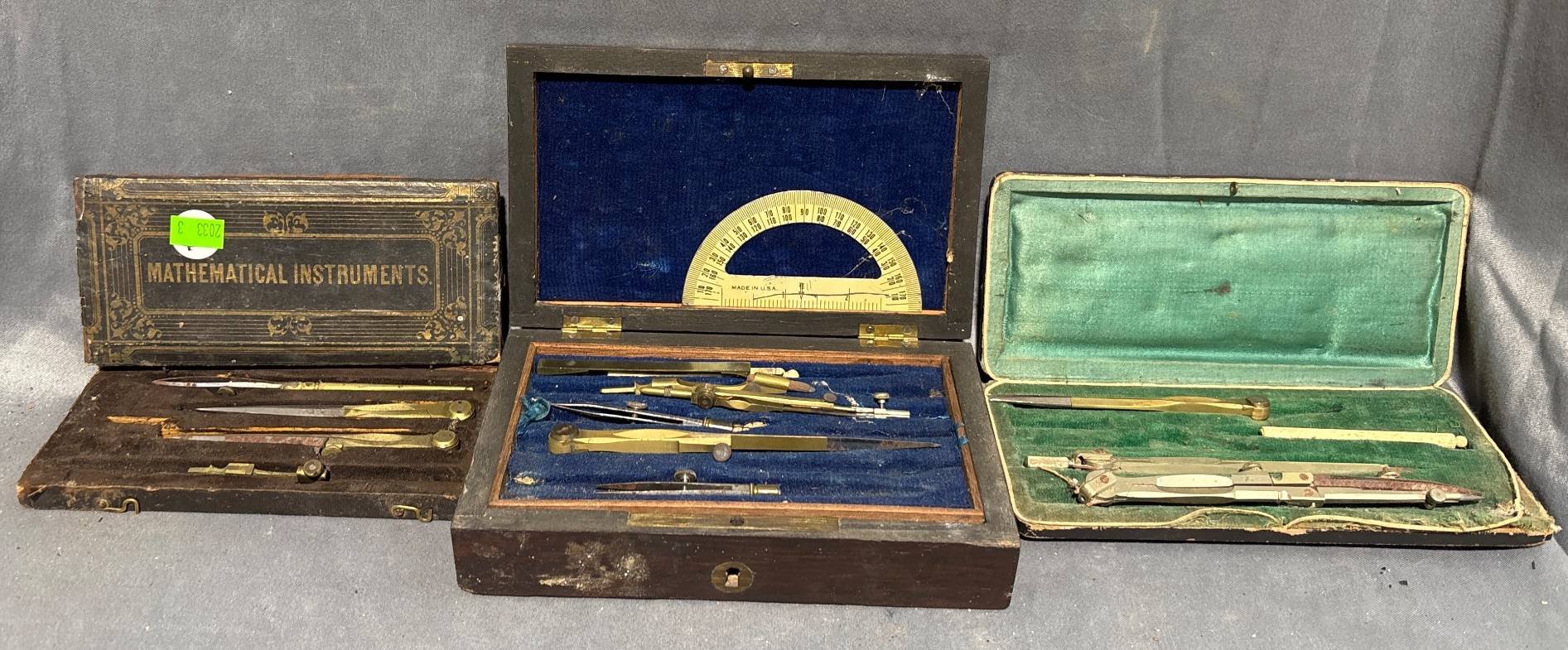 2033 3 Cases of Drawing Instruments With Brass and Metal Components