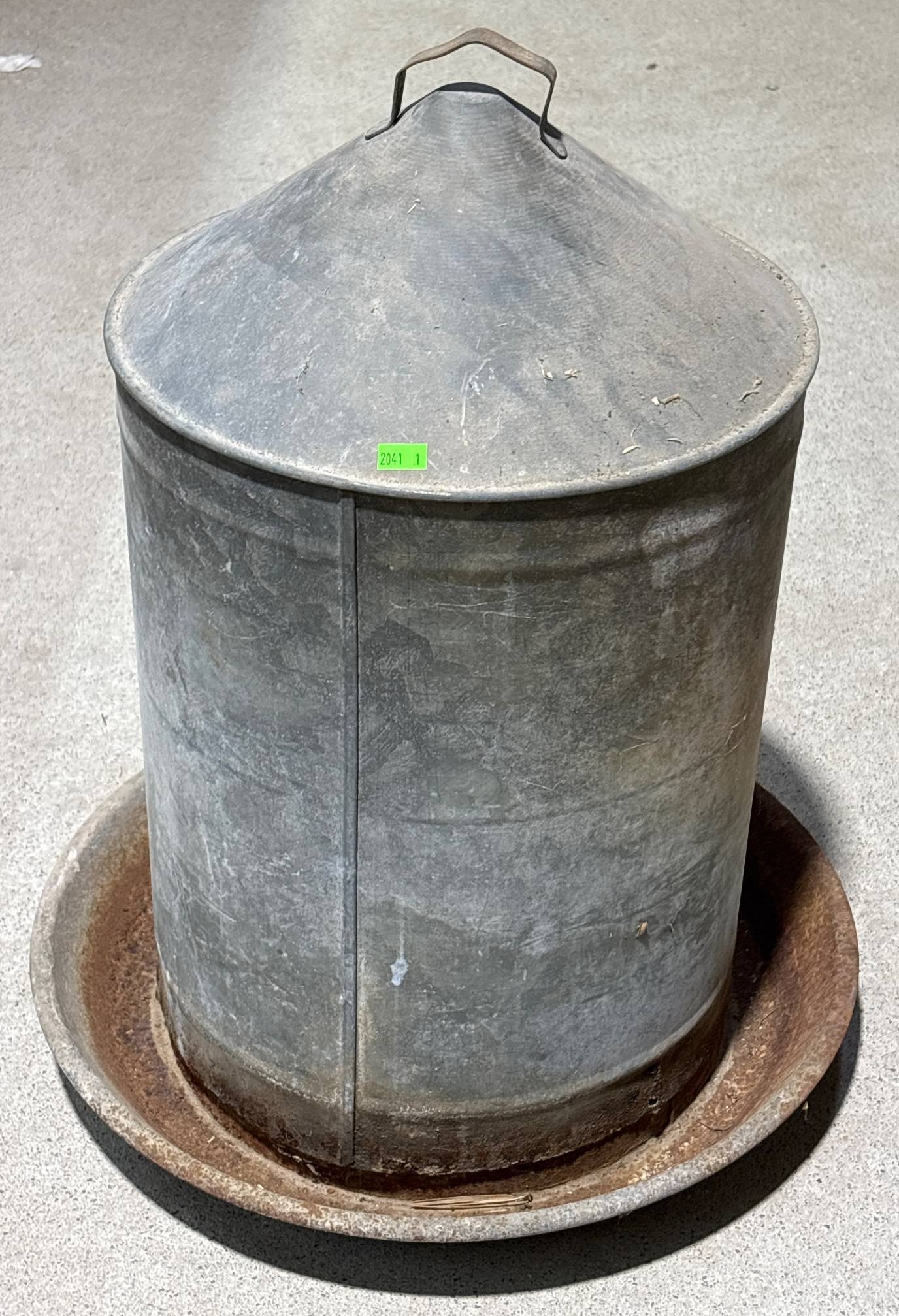 2041 Galvanized Metal Poultry Feeder with Handle 21”