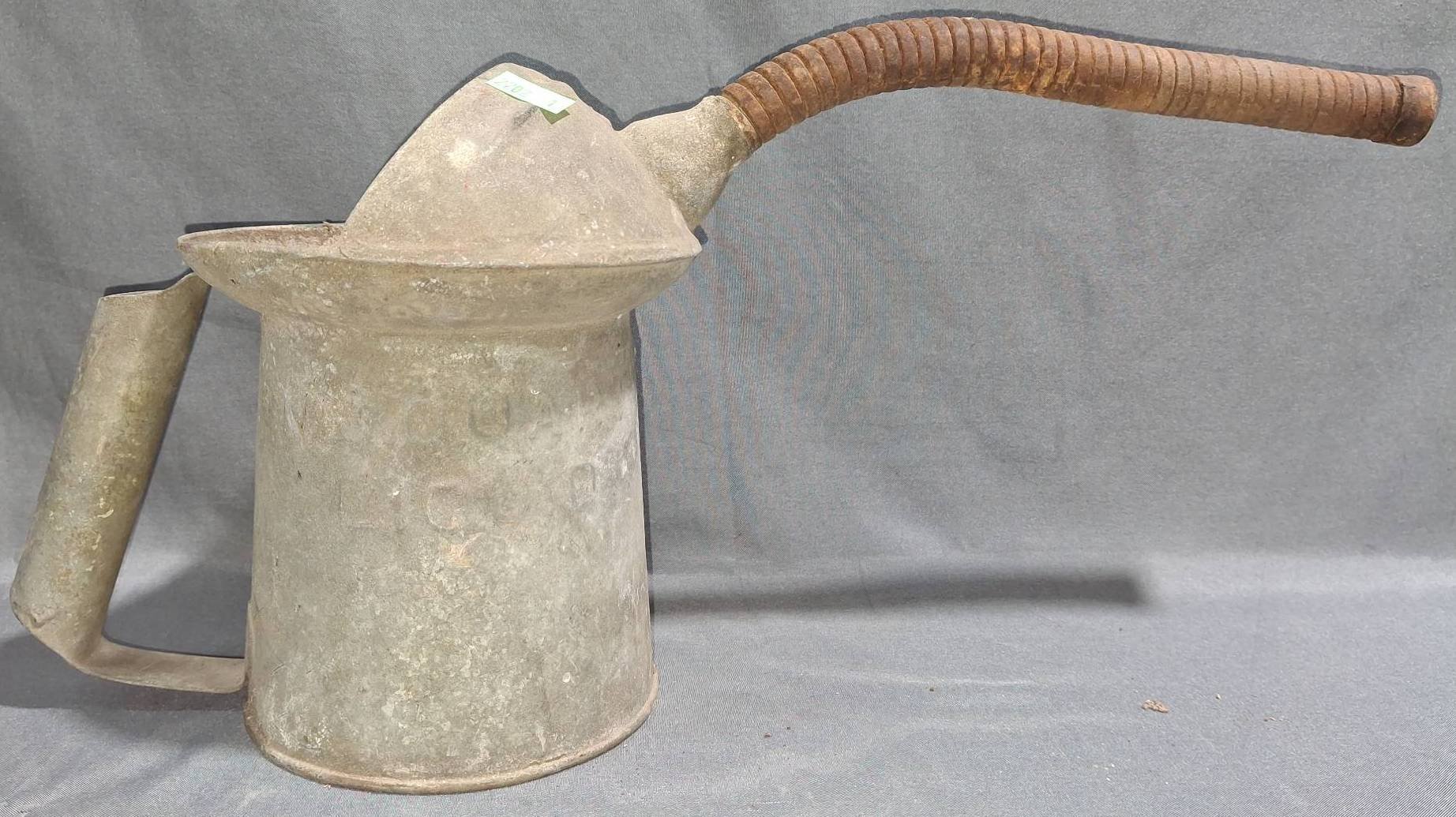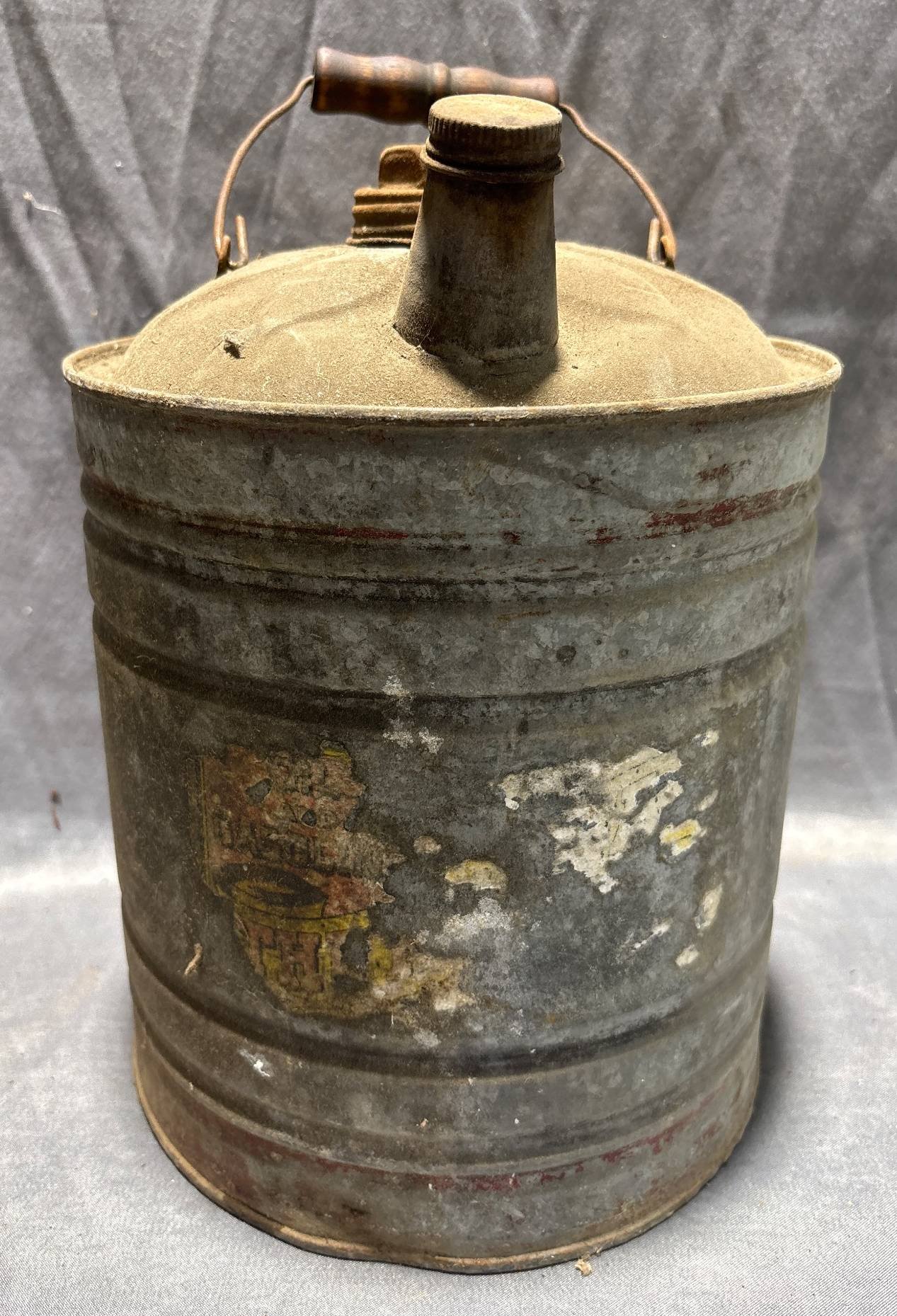 2043 Metal Gas Can with Spout and Wooden Handle 8”x10”