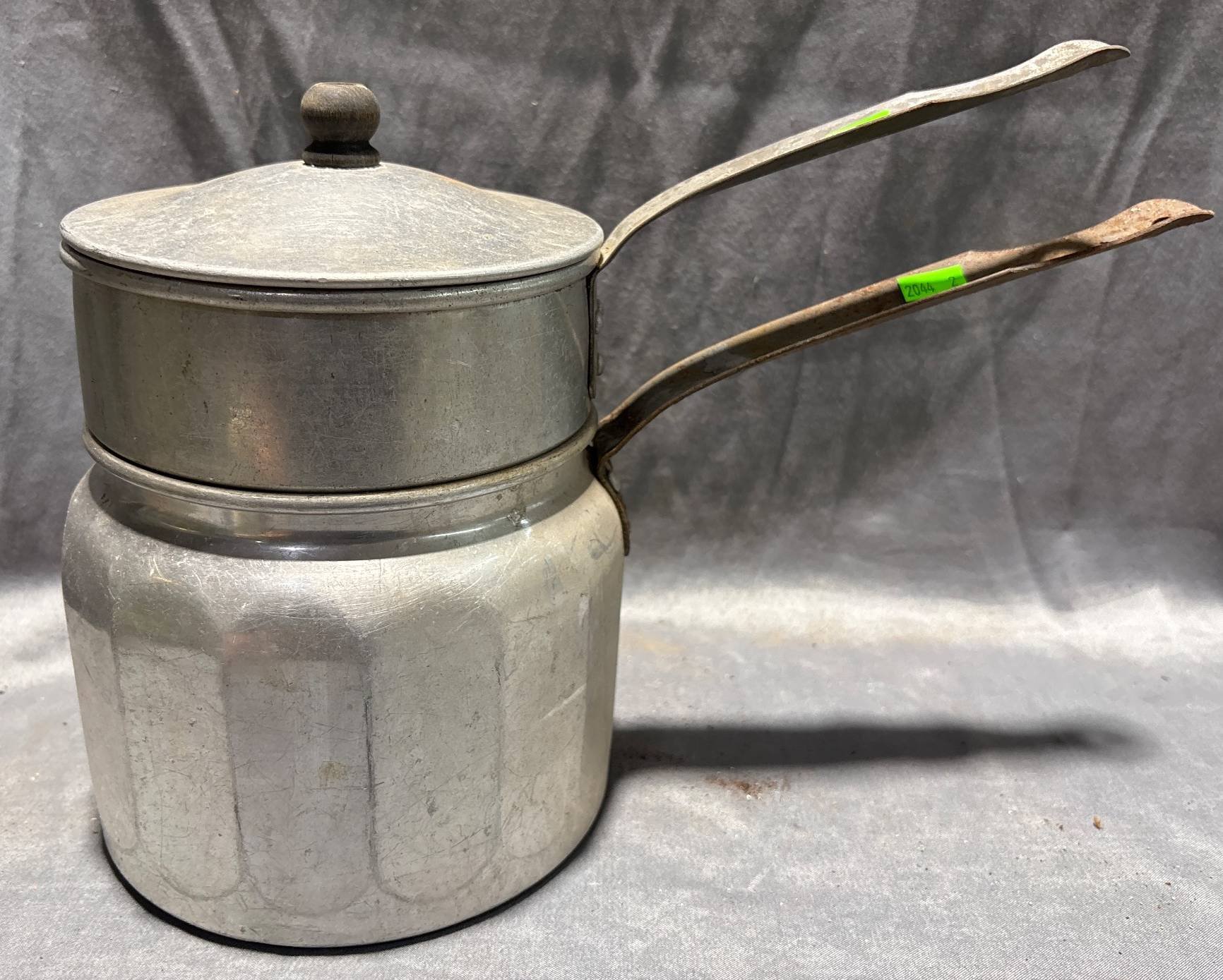 2044 Pure Aluminum Double Boiler with Lid, Made in U.S.A. 6”