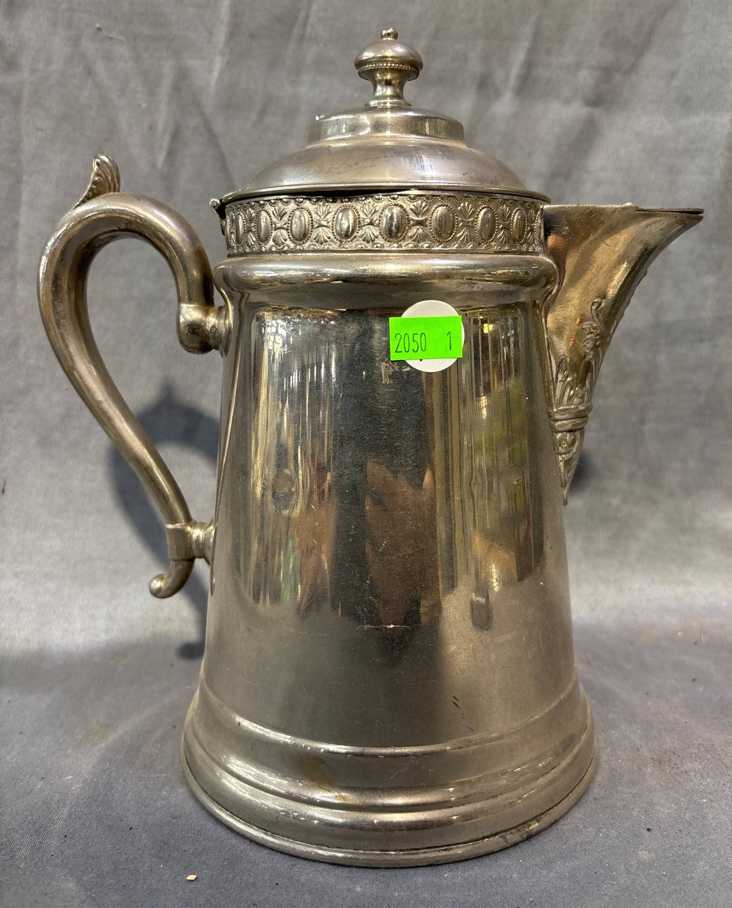 2050 Manning Bowman & Co. Silverplate Coffee Pot with Hinged Lid lid not connected 8”