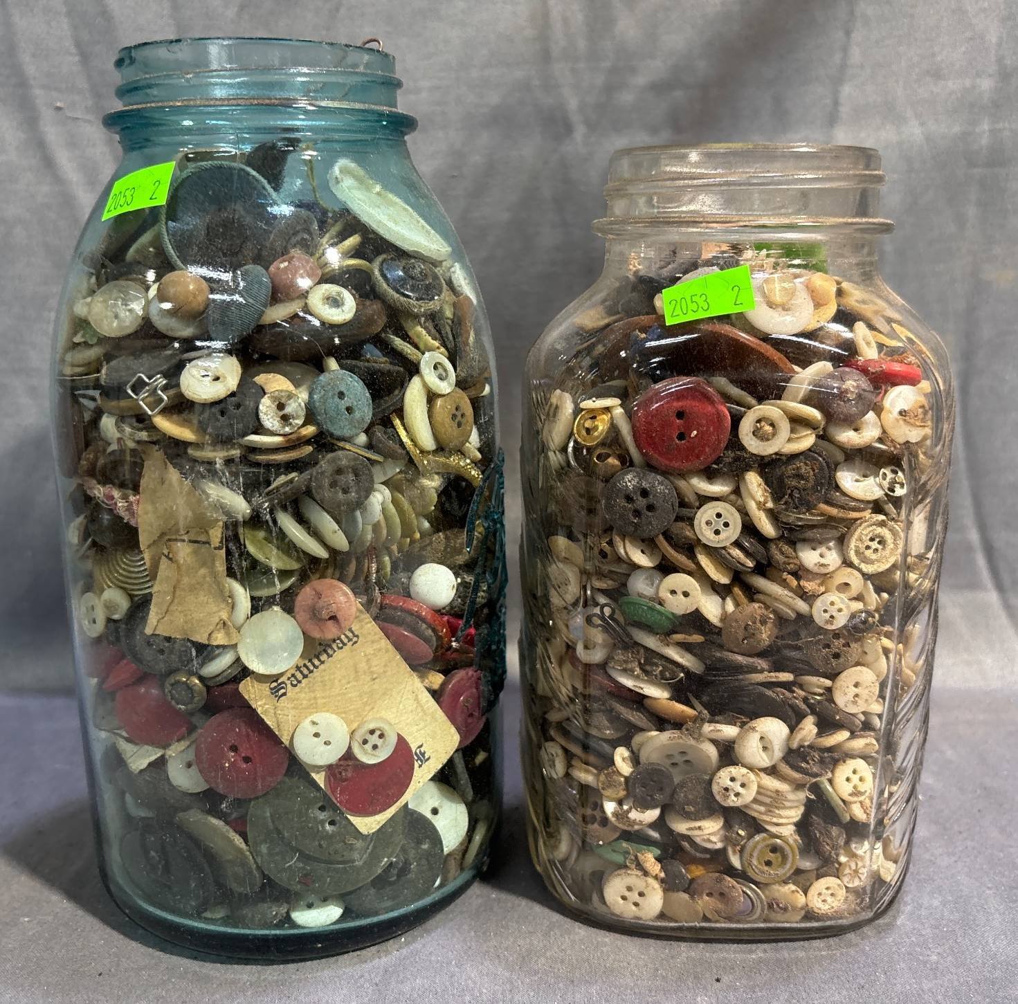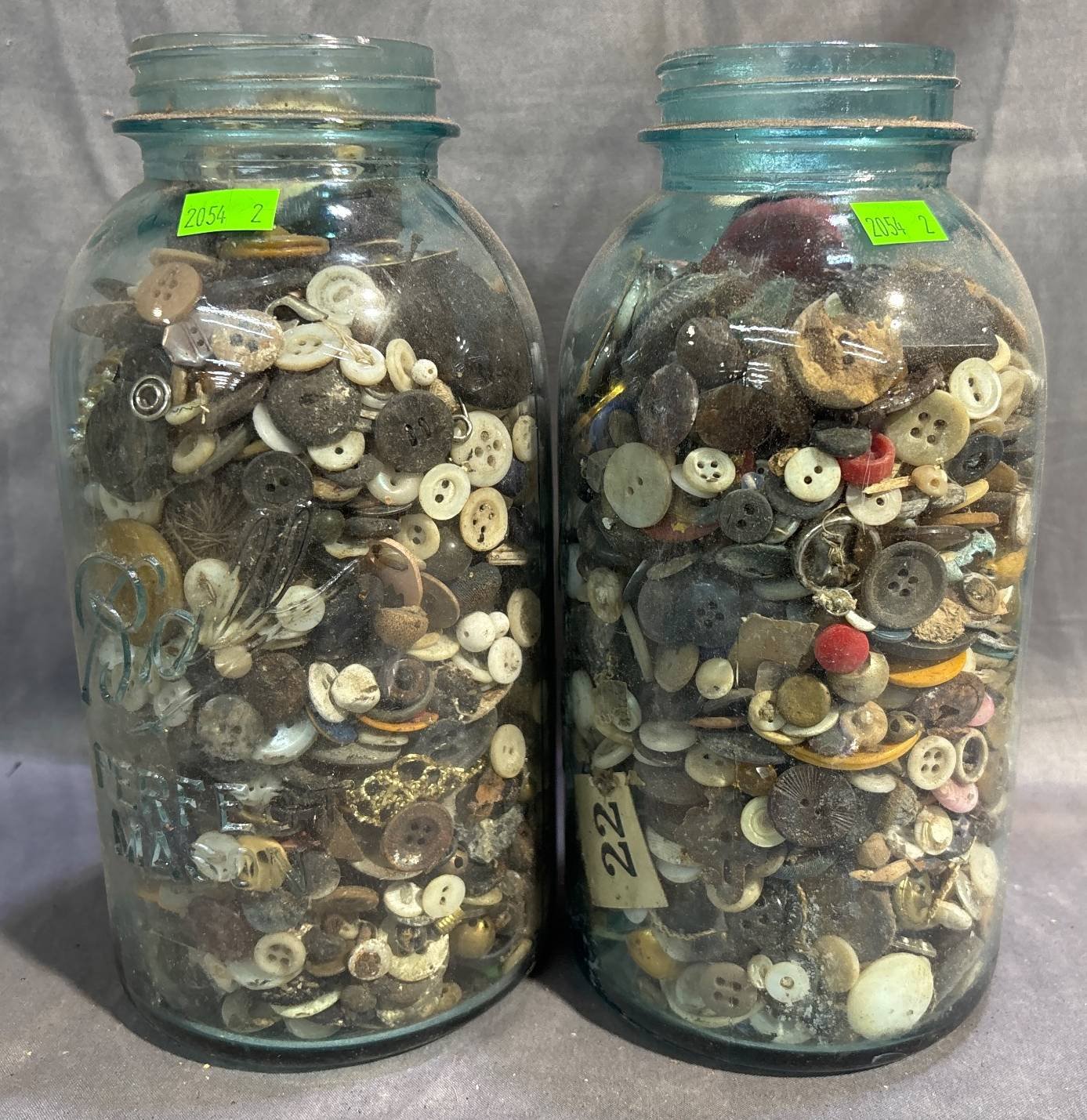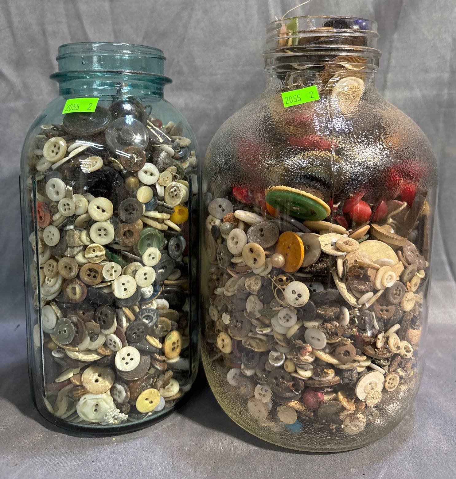 2055 2 Glass Jars Filled with Loose Buttons Half Gal