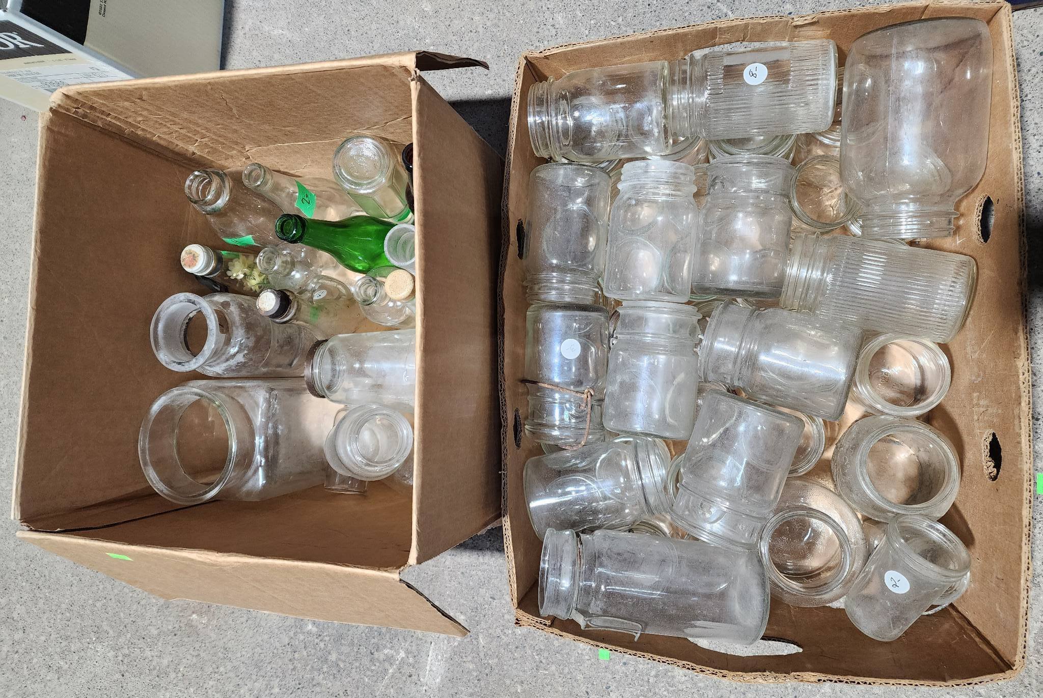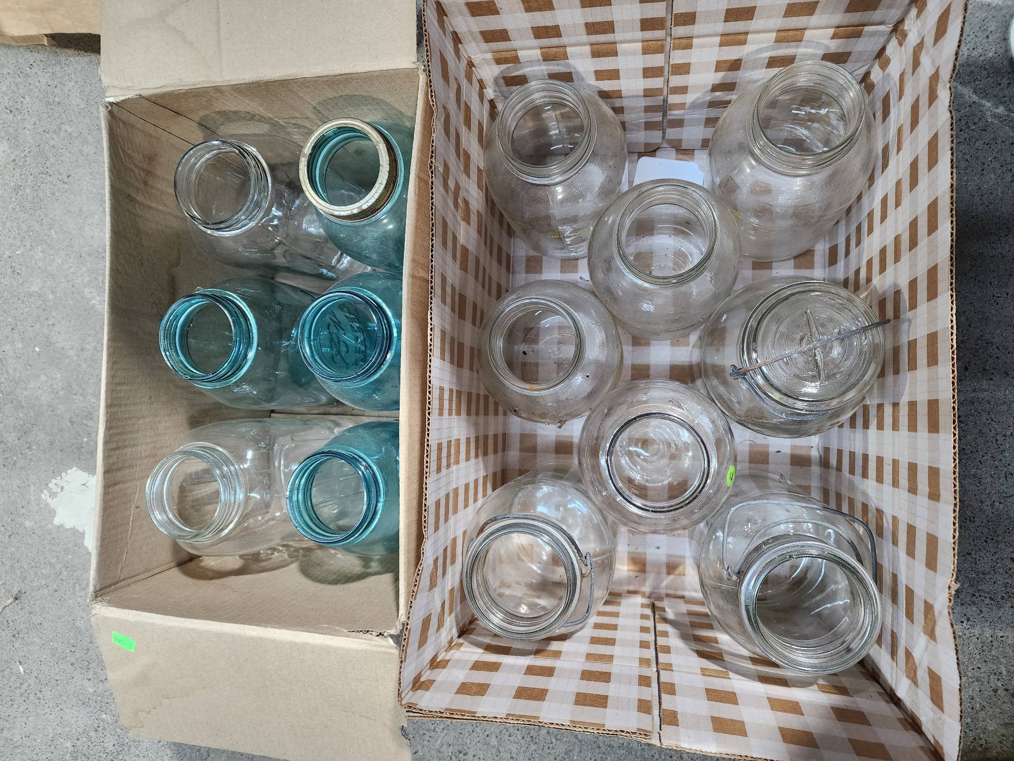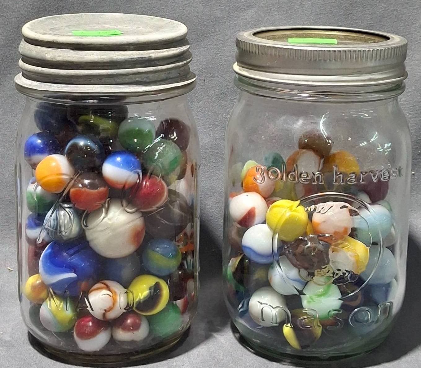 2055 2 Glass Jars Filled with Loose Buttons Half Gal