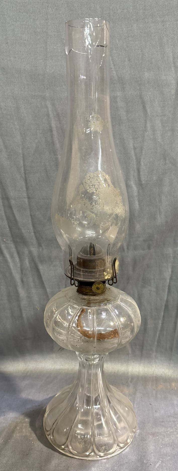 2057 Glass Oil Lamp with Chimney and Brass Burner 19” (Cracked Chimney)