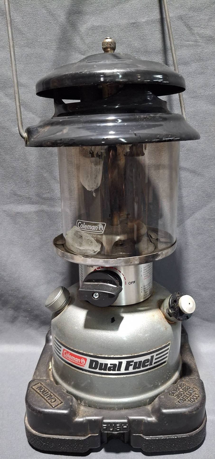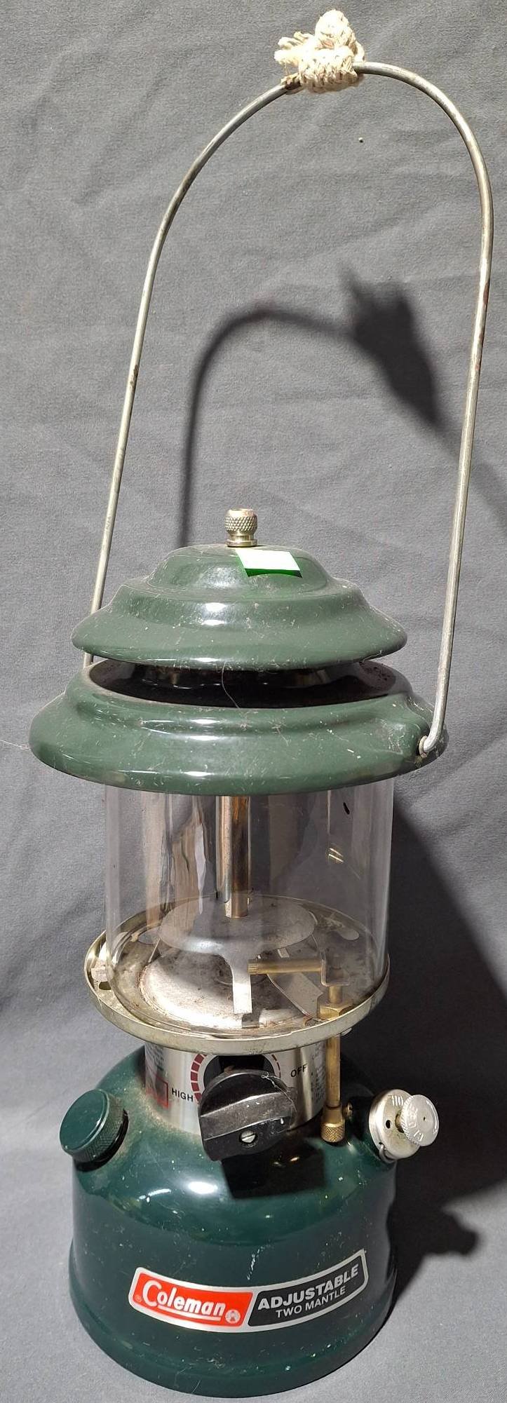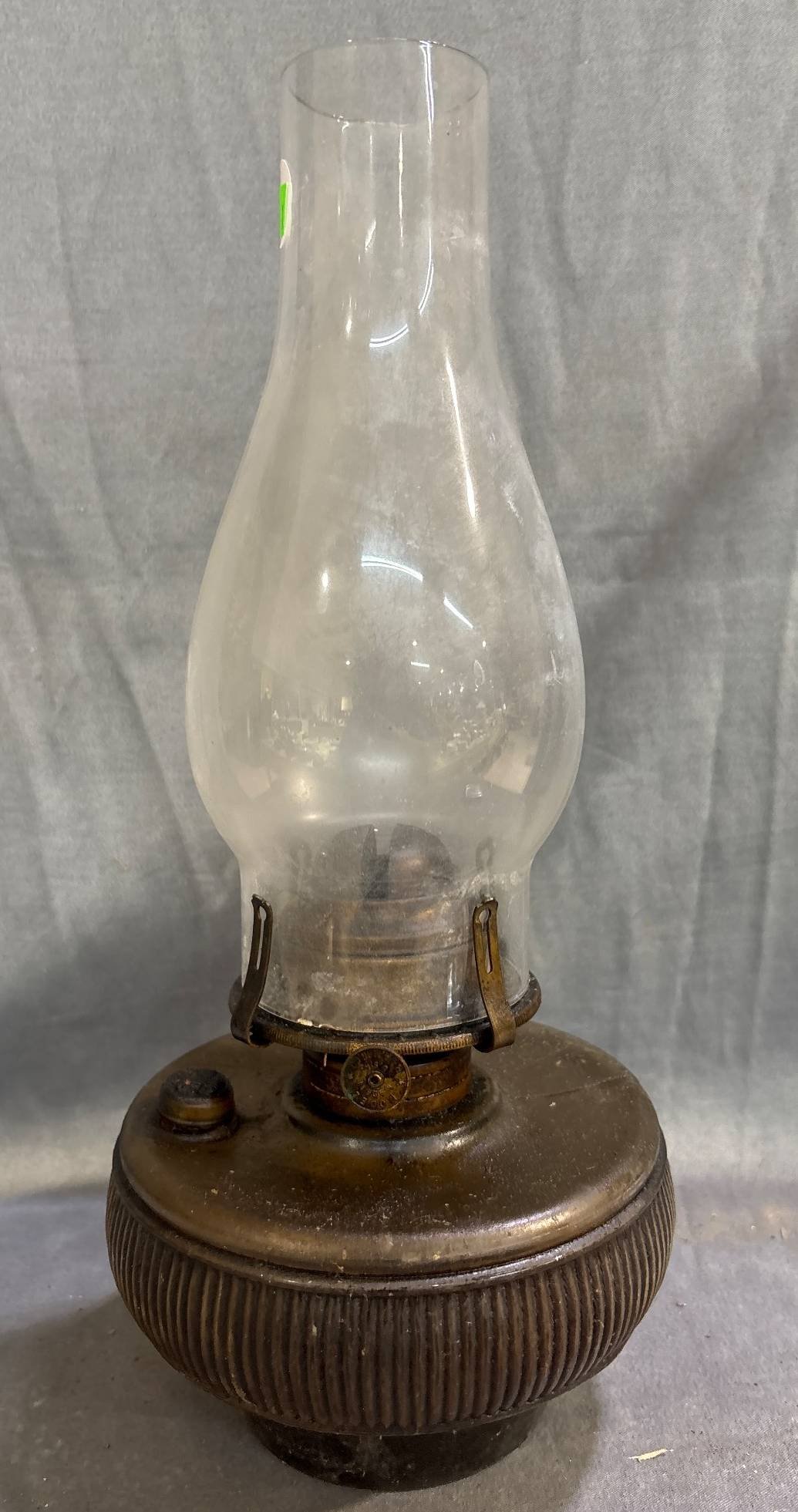 2059 Metal Oil Lamp Base with Clear Glass Chimney, Model Marked ‘Queen Anne U.S.A.’13”