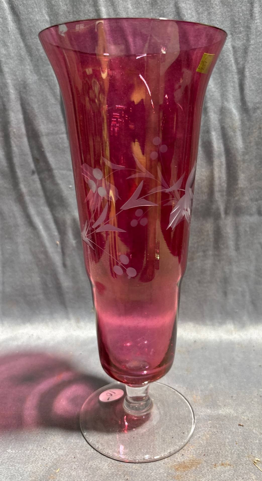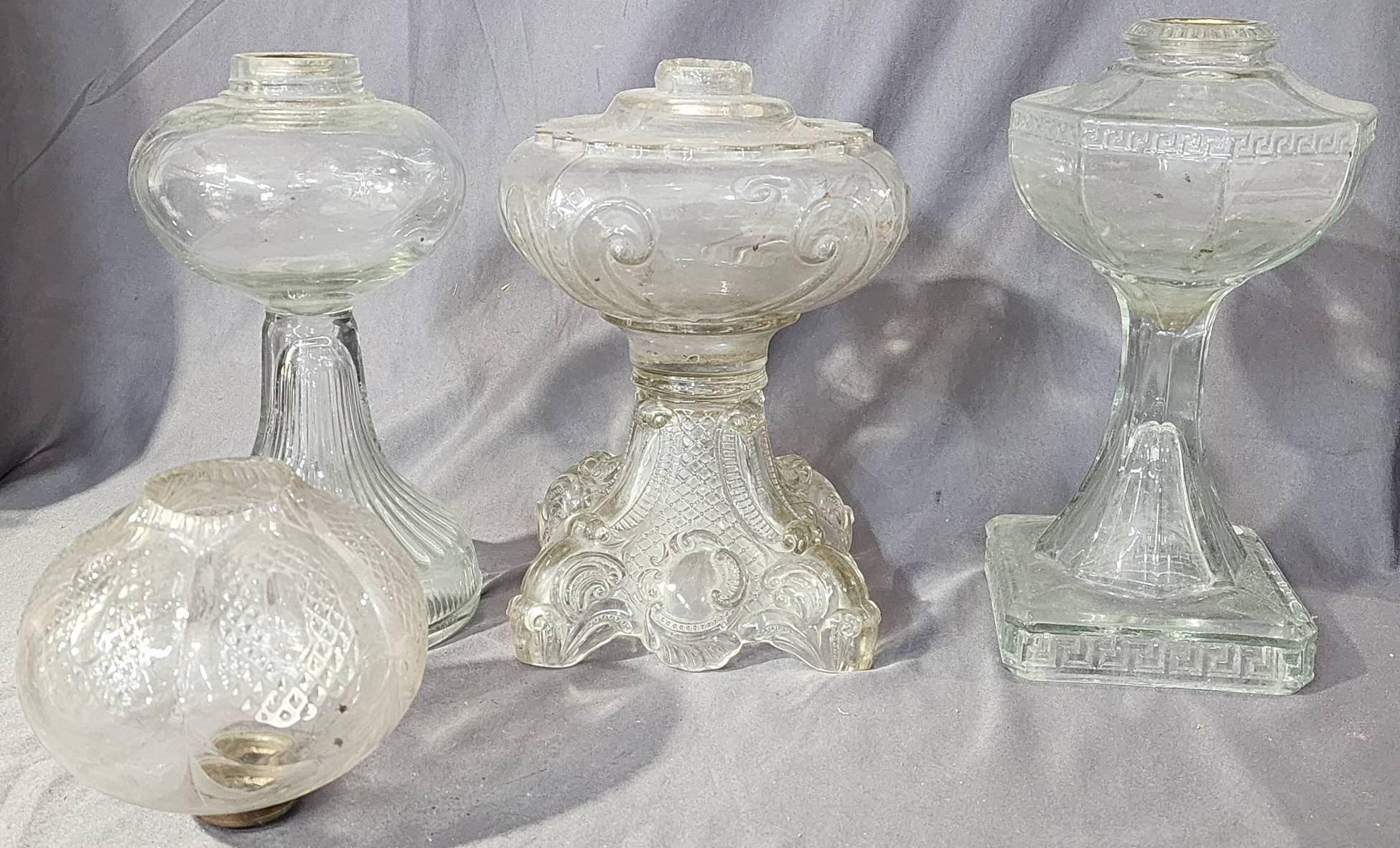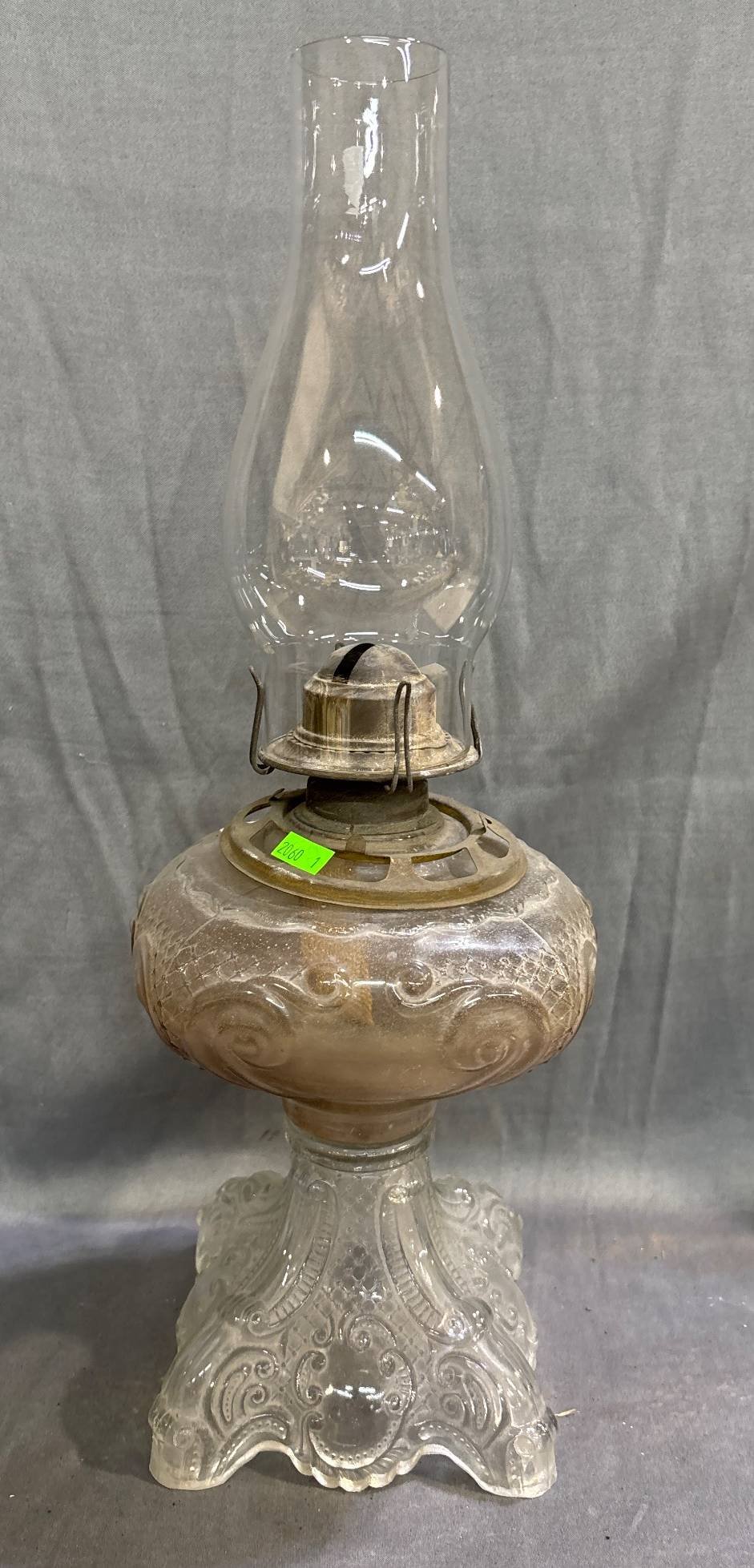 2060 Clear Glass Oil Lamp with Etched Base and Brass Burner 19”