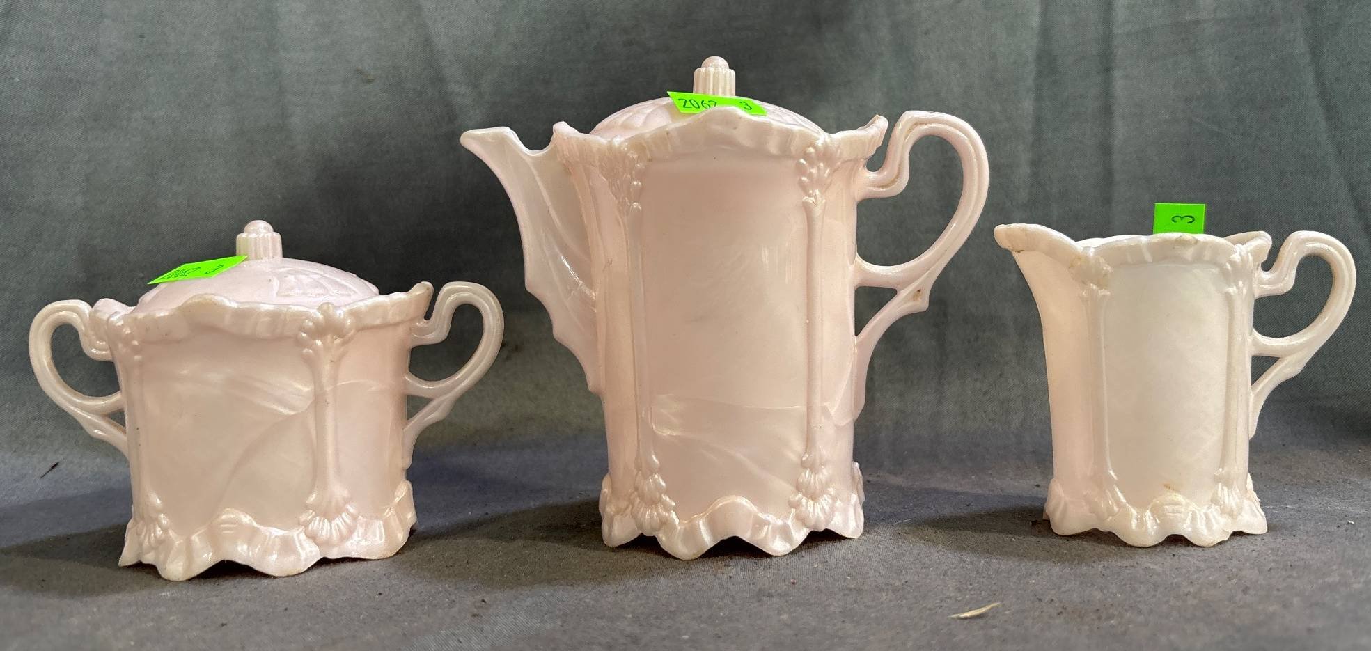 2062 Pink Plastic Tea Service Pieces Marked ‘Banner, USA’ 4”,2.5”
