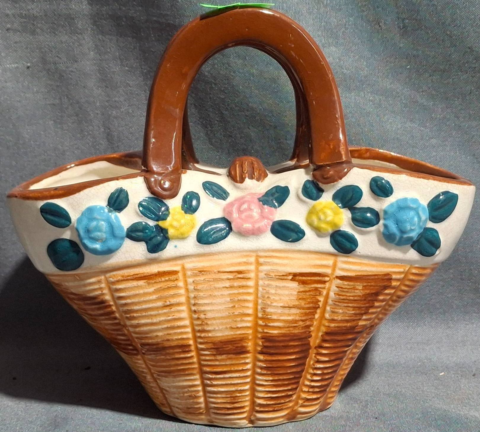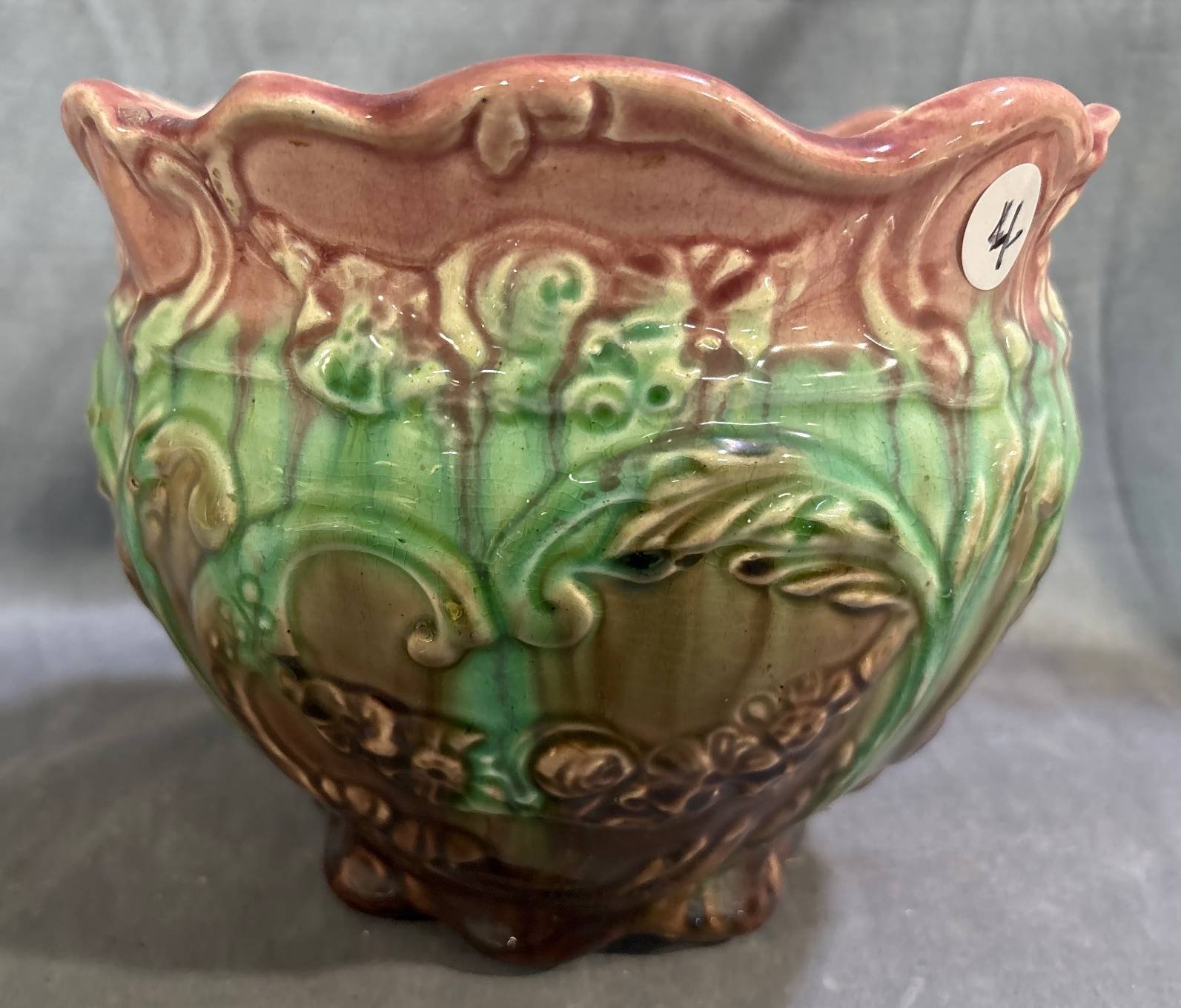2063 Jardiniere with Scalloped Rim and Floral Motif (cracked/chipped on rim) 8”x7”