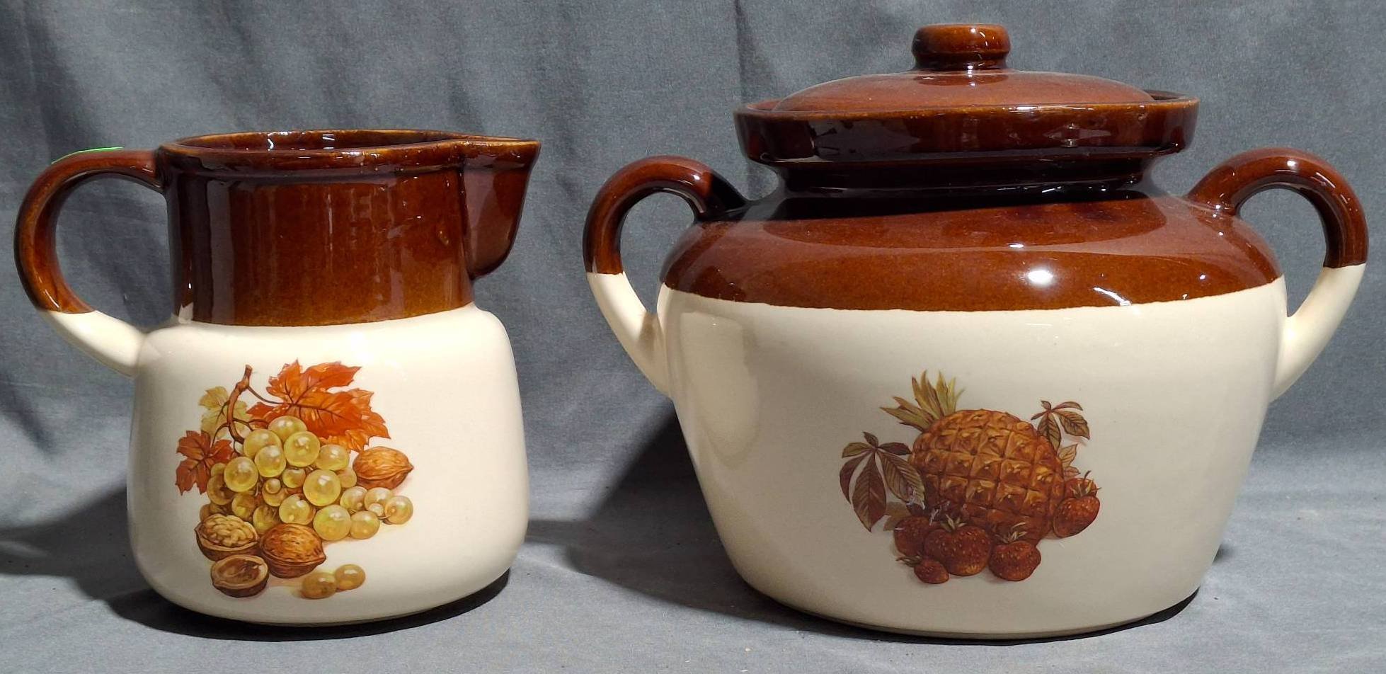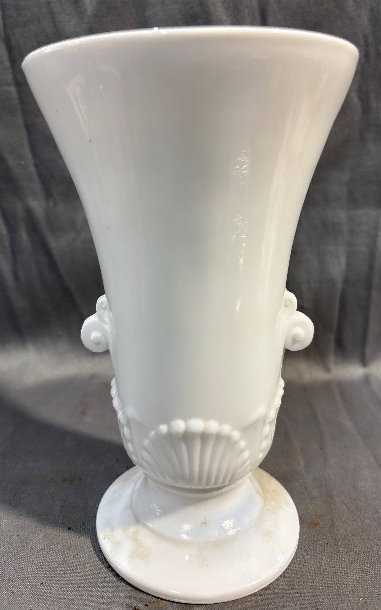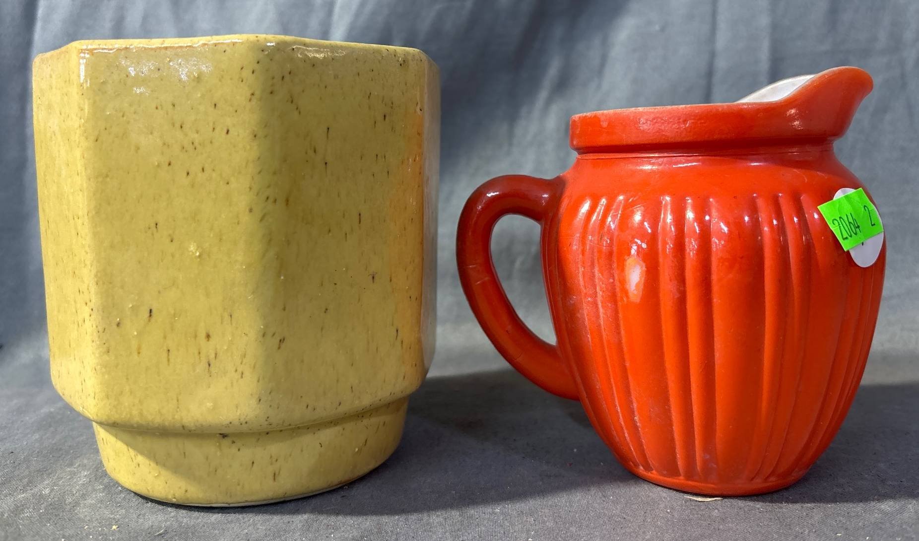 2064 Pottery Vase and Hazel Atlas Milk Glass Pitcher 4.5”,4”