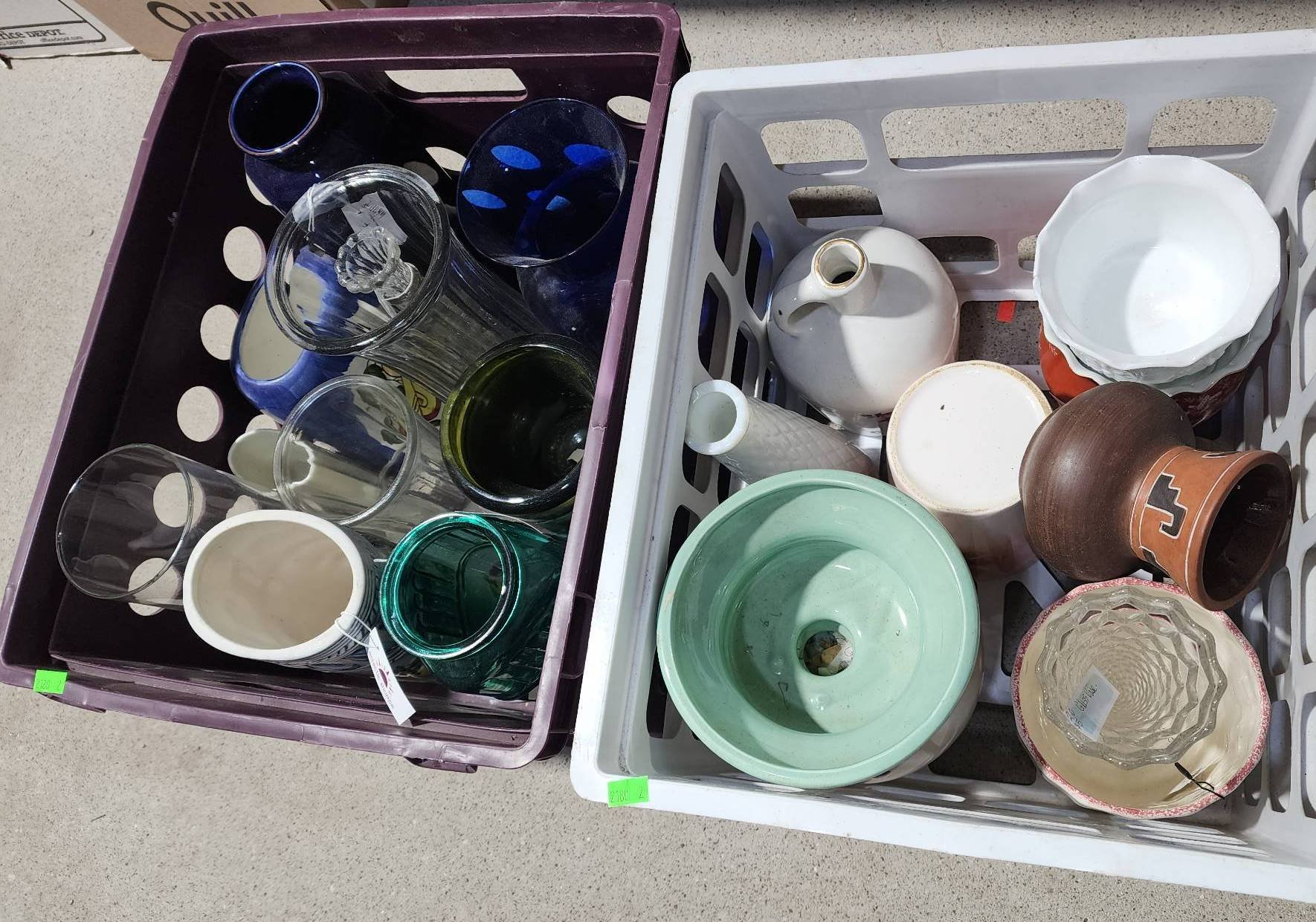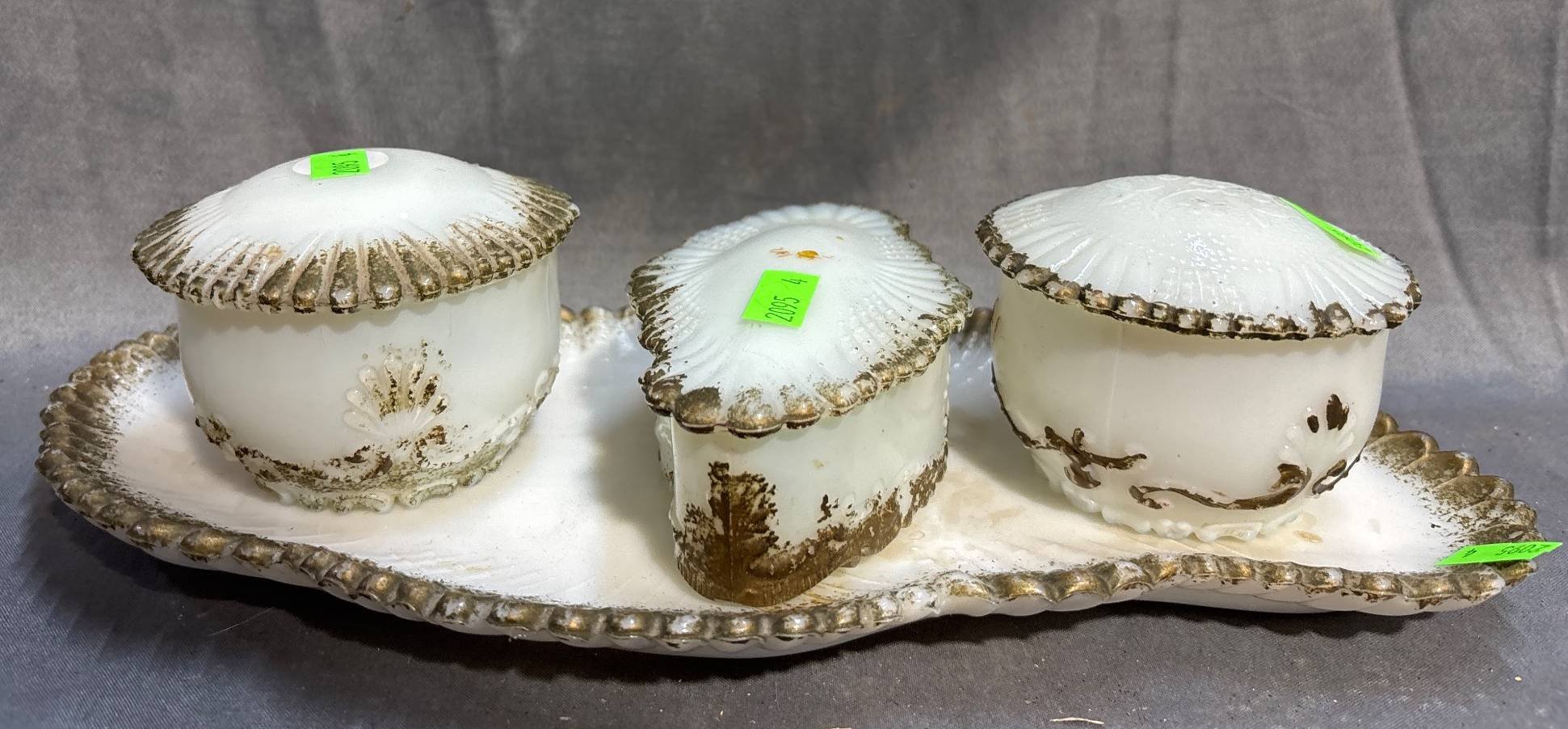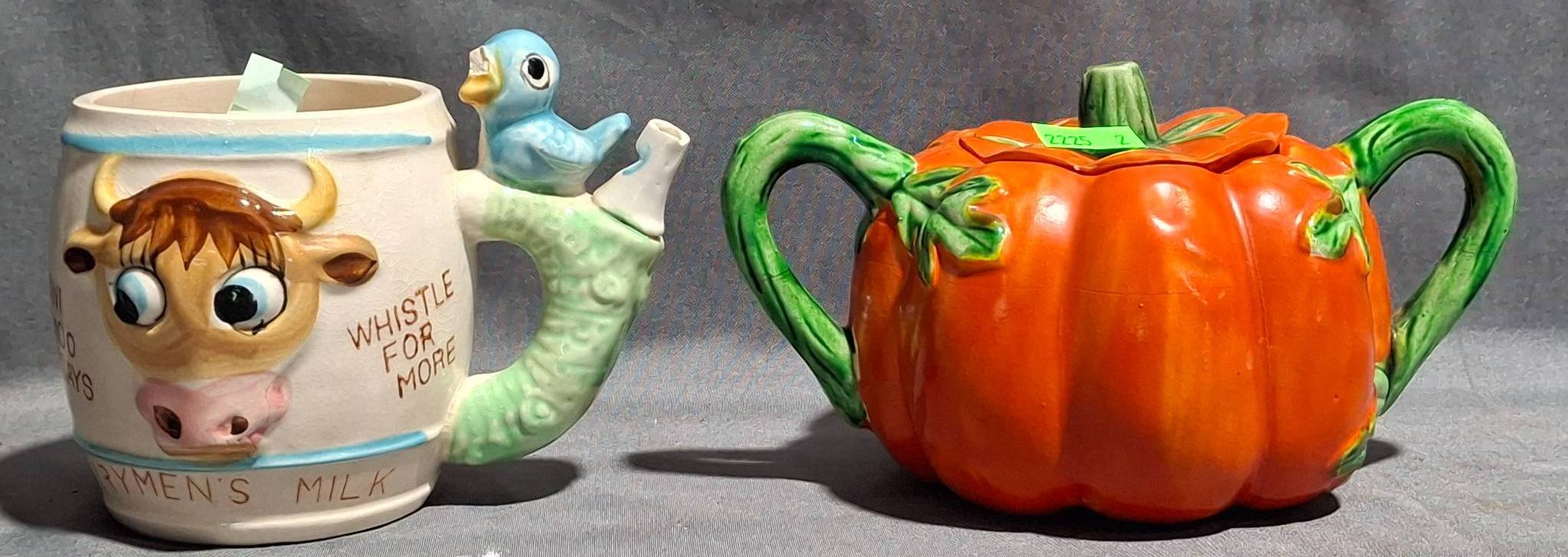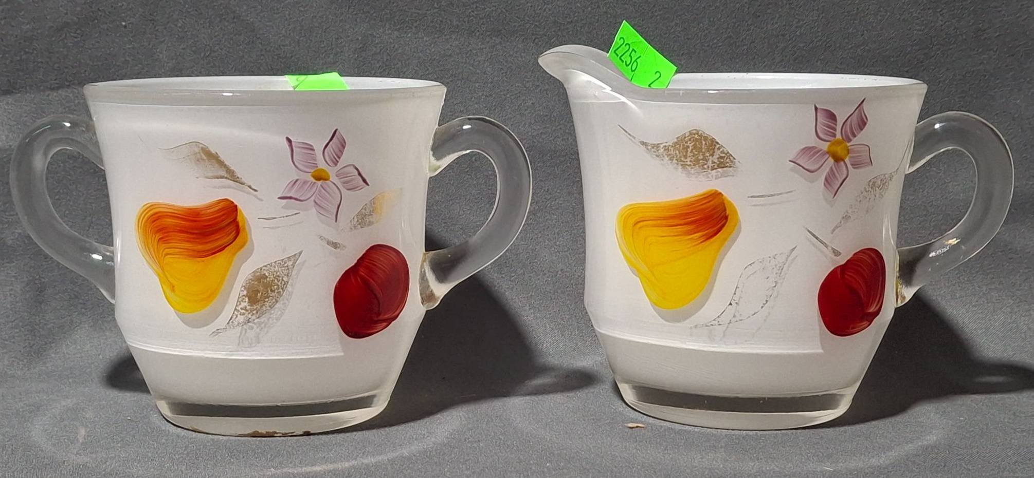2064 Pottery Vase and Hazel Atlas Milk Glass Pitcher 4.5”,4”
