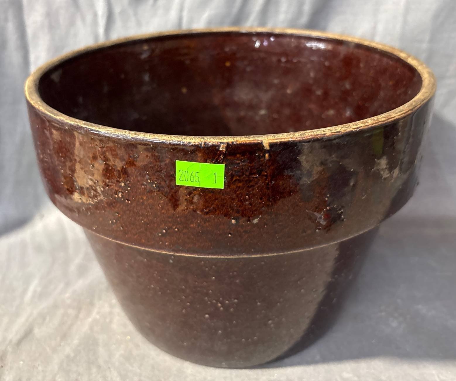 2065 Brown Glazed Pottery Planter (some crazing) 9.5”x7”