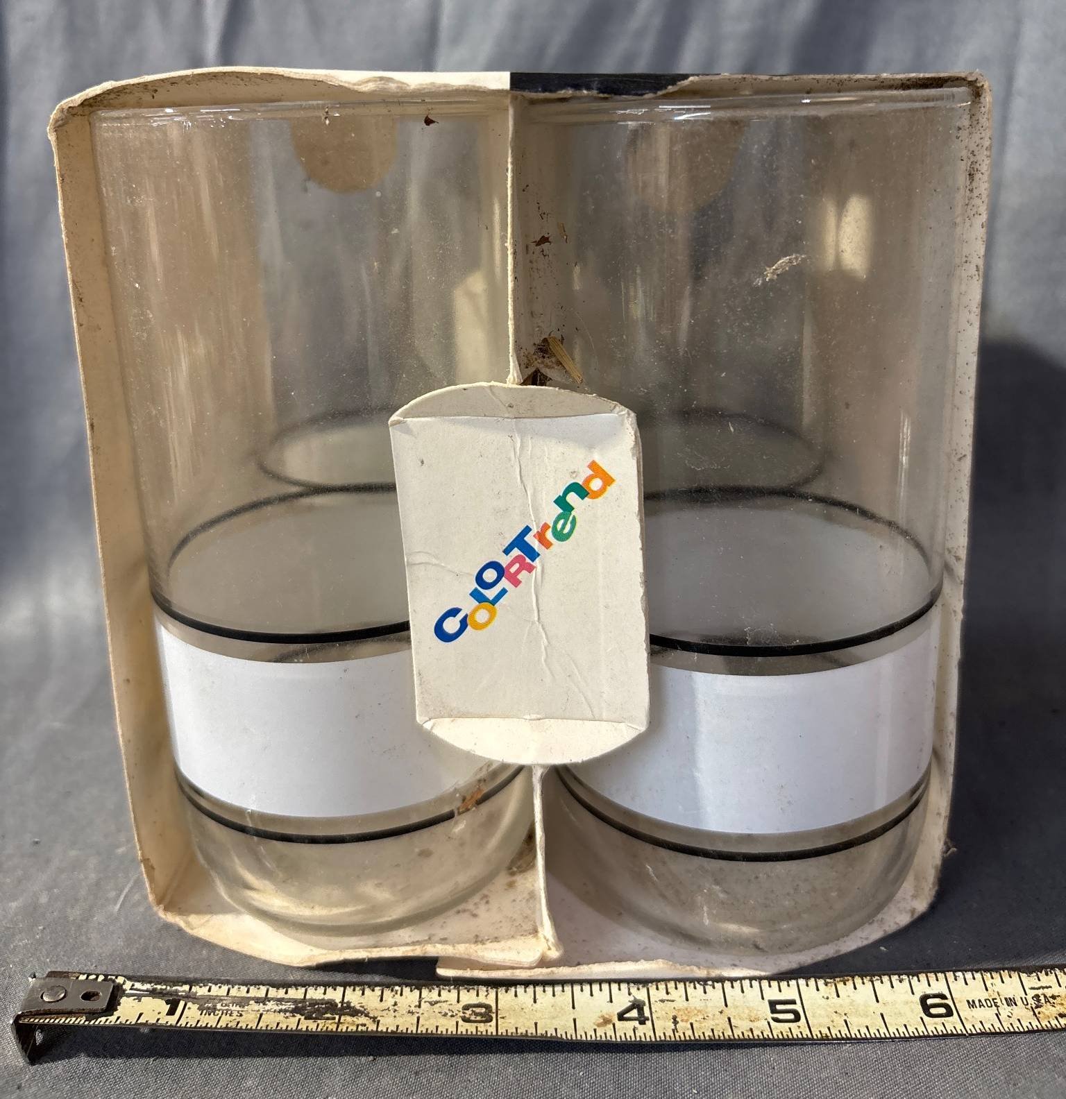 2067 4 Libbey ColoTrend Clear with white and Black Trim Beverage Glasses, 17 oz 3”x6”