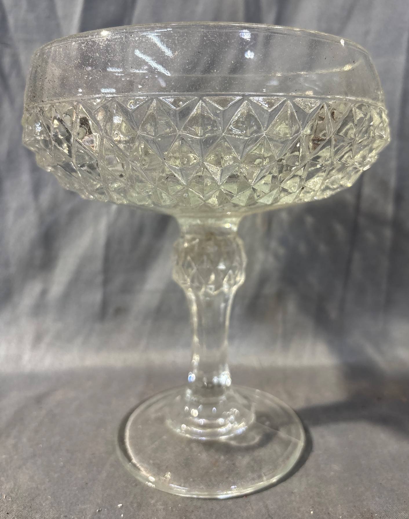 2068 Indiana Glass Co. Diamond Point Crystal Pedestal Compote 6”x7.5”