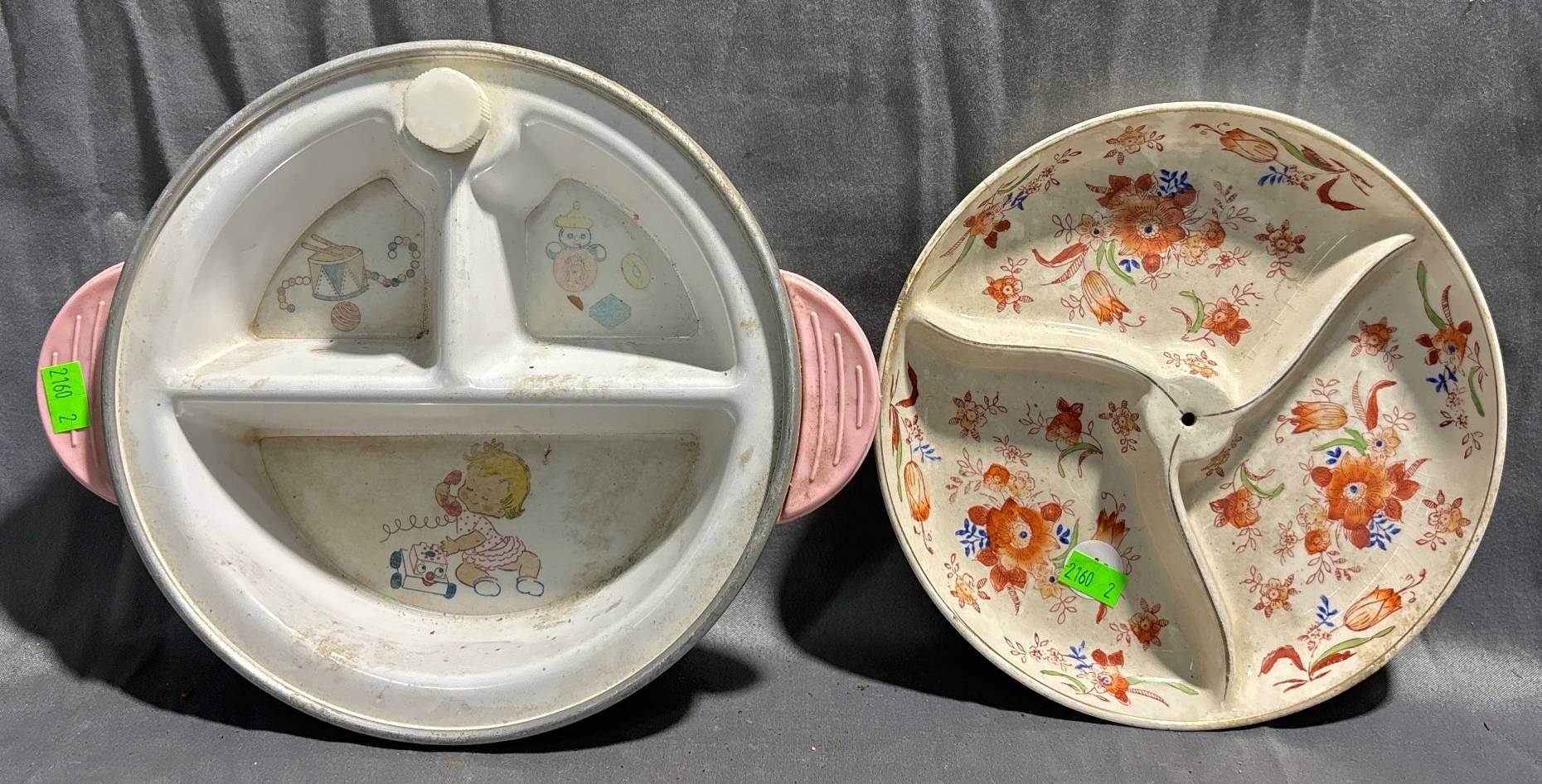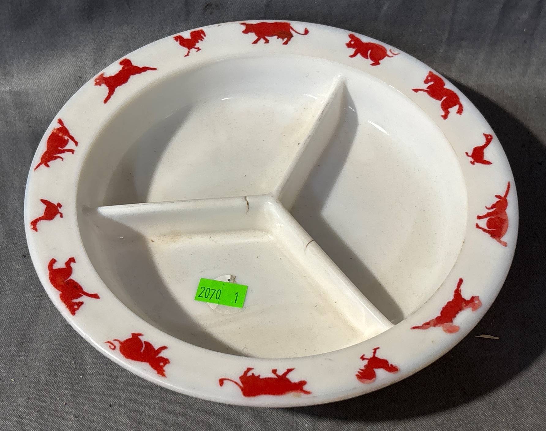 2070 White Glass Divided Plate with Red Animal Motif 8”