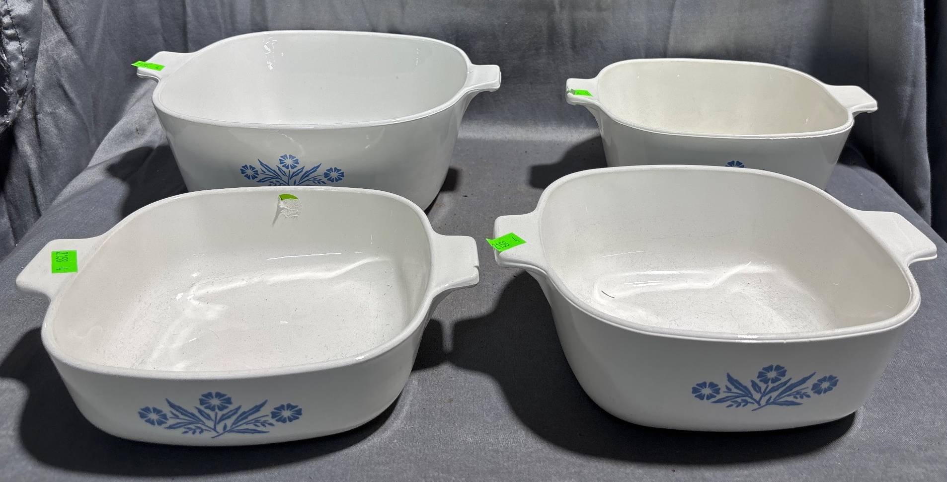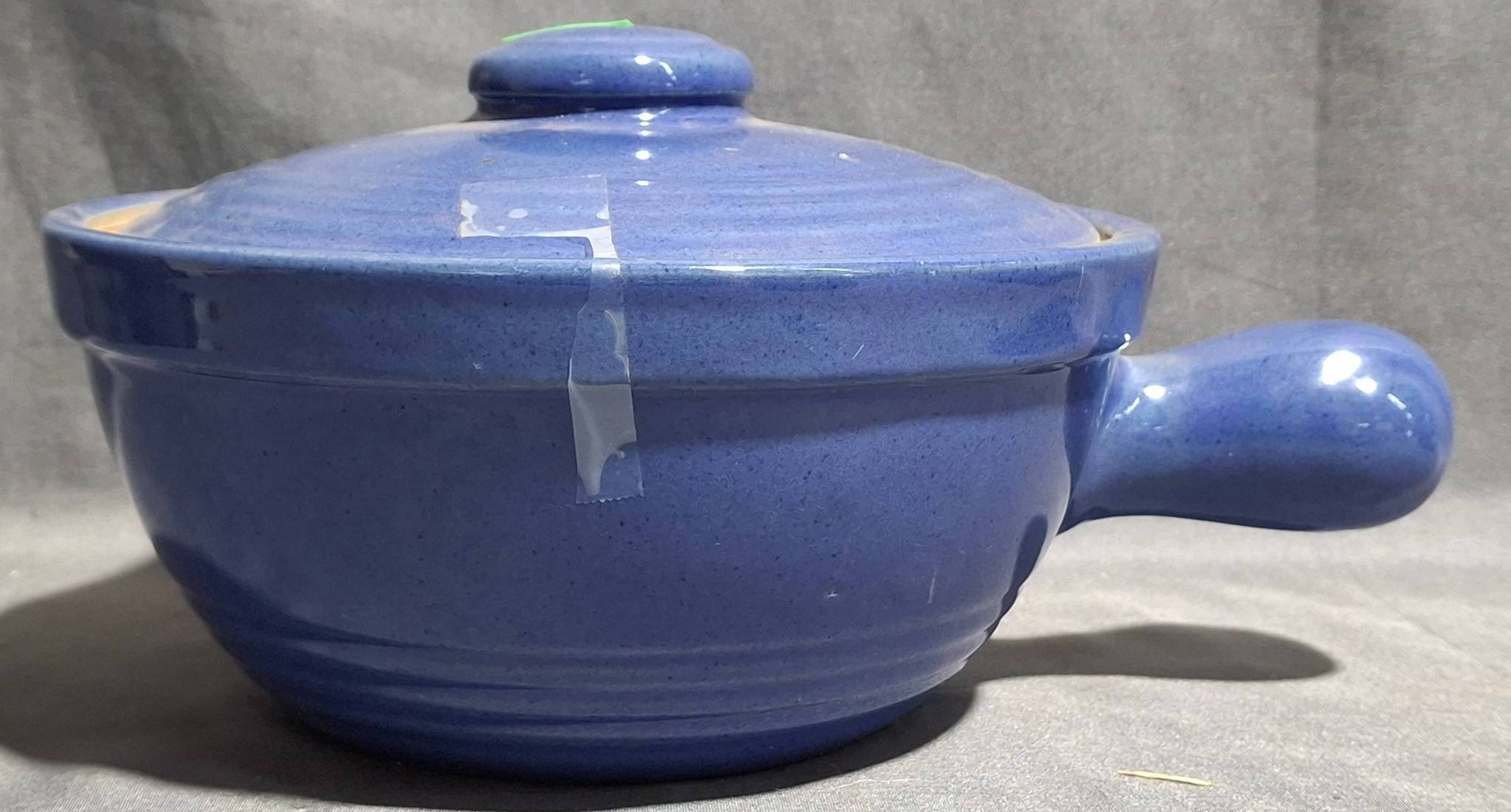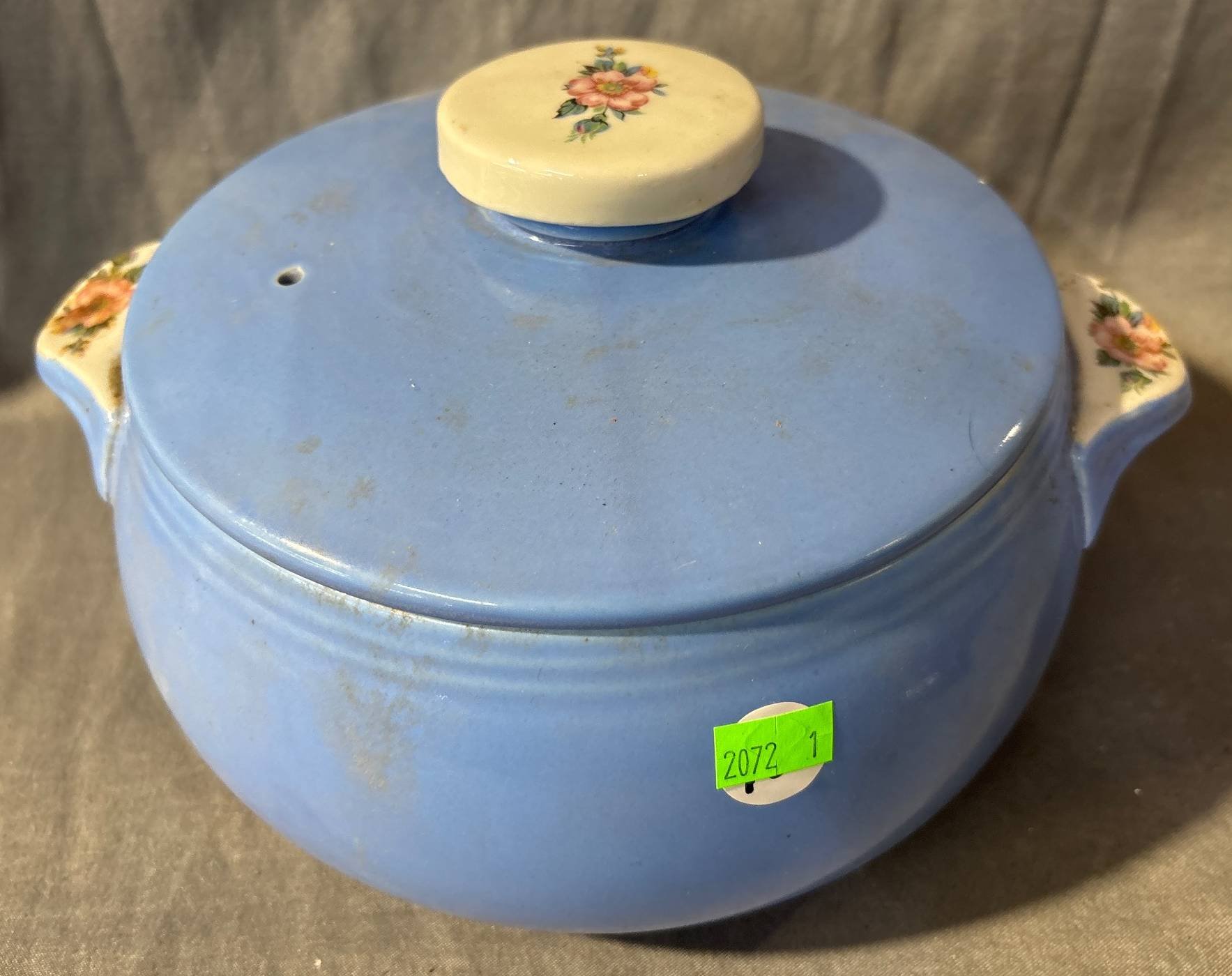 2072 Hall’s Superior Kitchenware Blue Lidded Casserole Dish with Floral Accents 7.5”x4”
