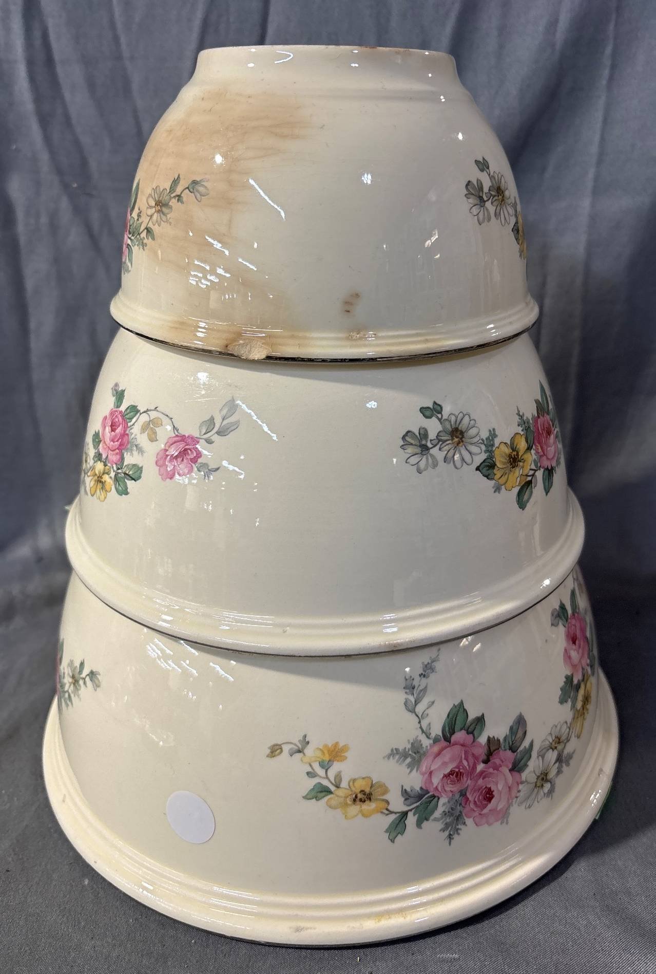 2073 3 Kitchen Kraft OvenServe USA Mixing Bowls with Floral Design, 10.5”, 8.5”, 6.5”, Chip