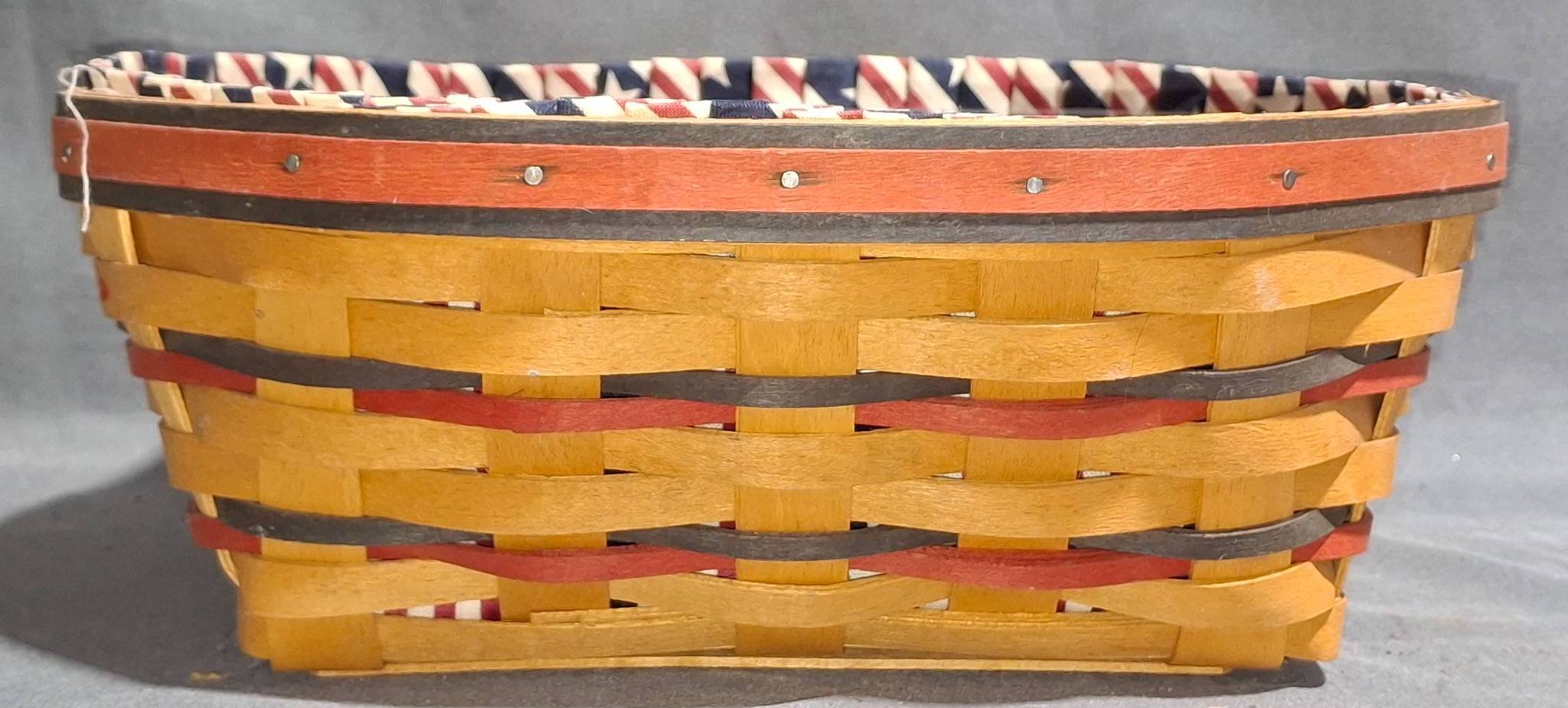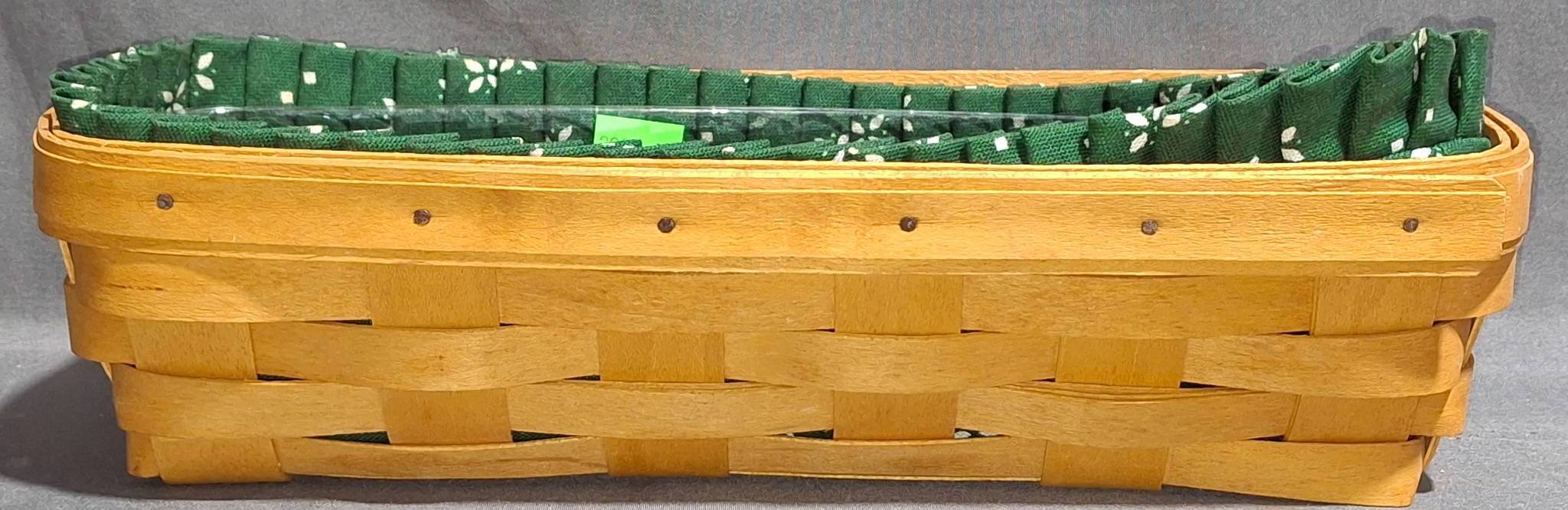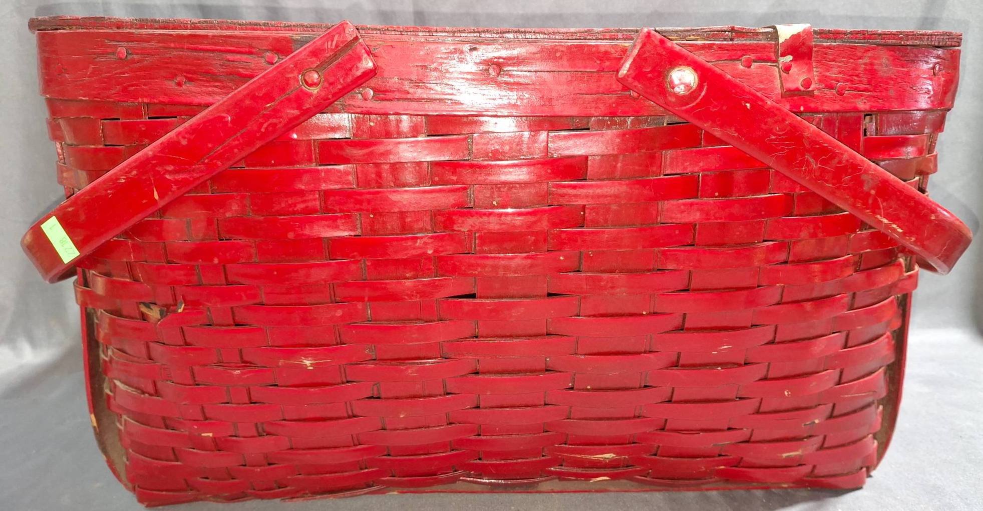 2081 Pressed Glass Basket with Ribbed Design and Arched Handle Brocken Handle 13”